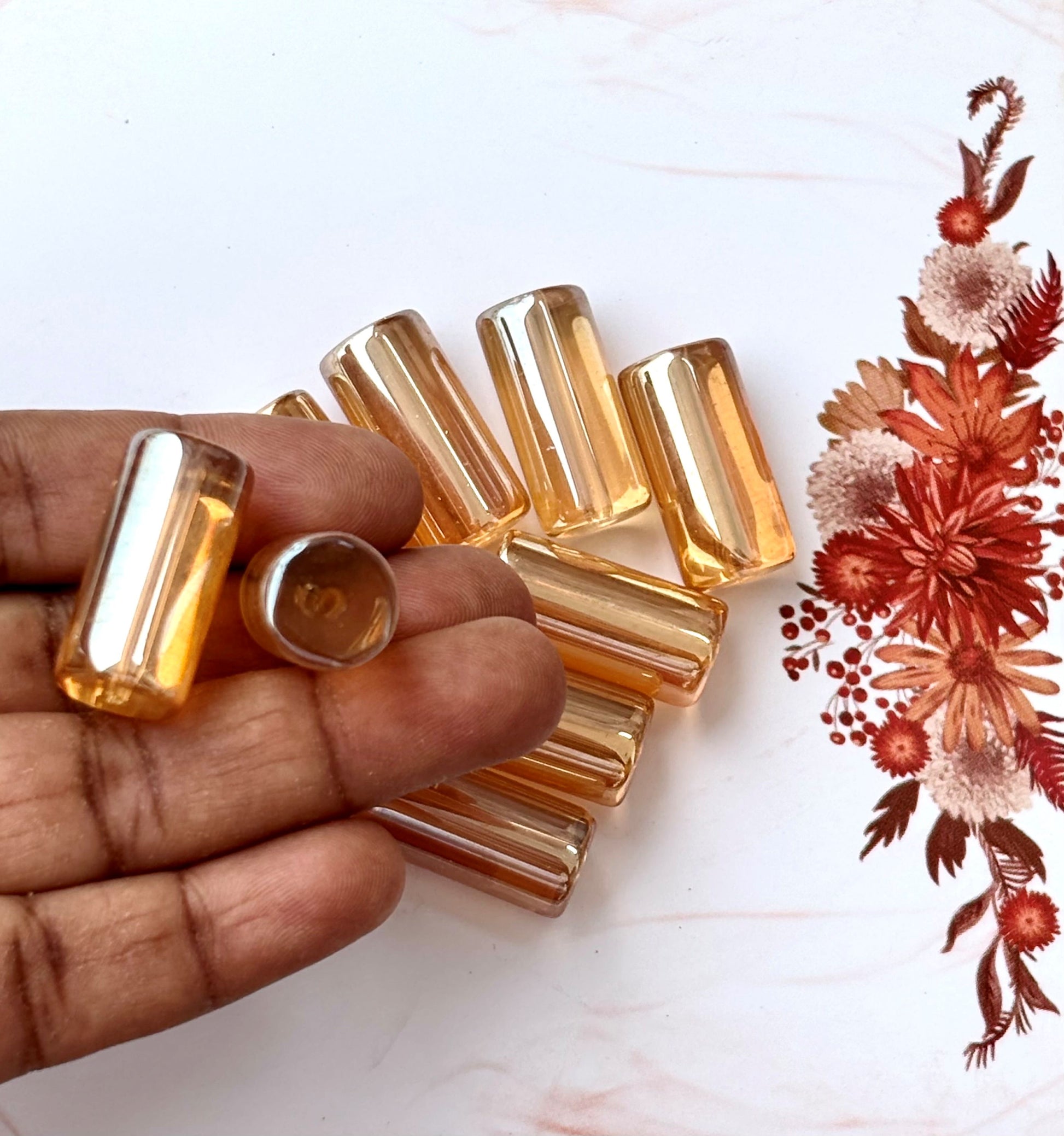 Add a modern touch to your designs with these sleek amber-toned glass tube beads, perfect for unique necklaces, bracelets, and earrings. Pack of six beads. Size 24x10MM.