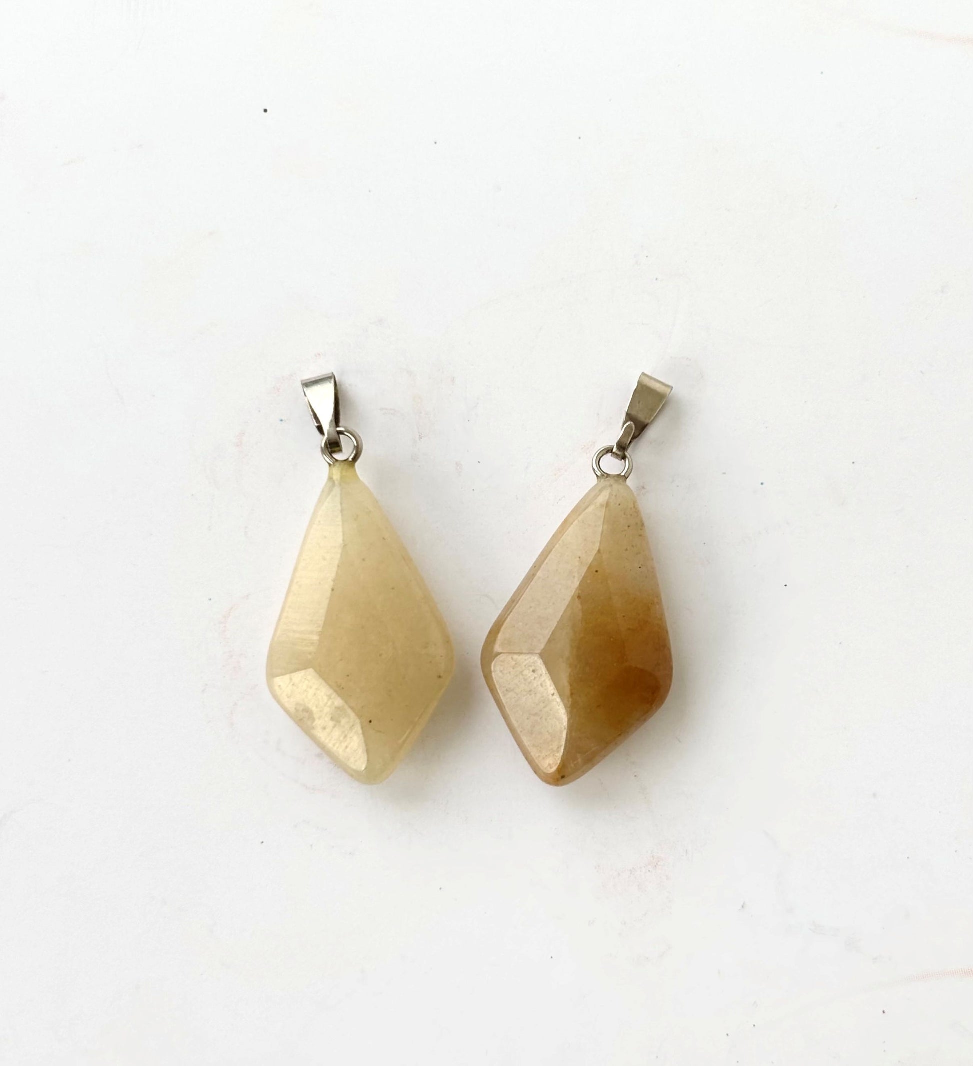 Beige Kite Shaped Faceted Semi-Precious Stone Pendant