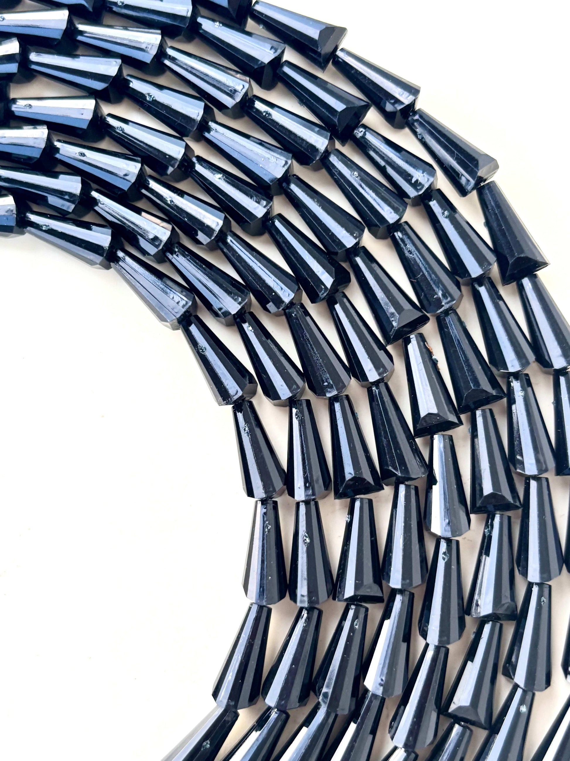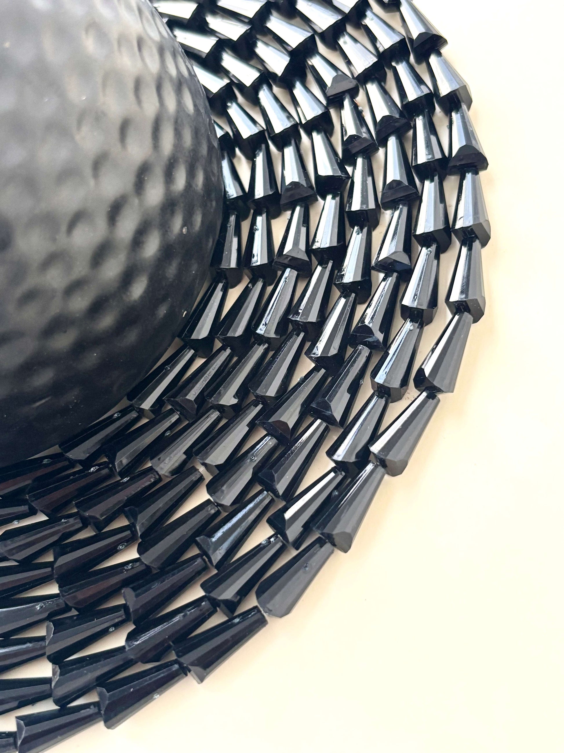 Discover black tower-shaped crystal acrylic beads, perfect for adding a unique vertical accent to your jewelry and craft projects. Size 15x6MM. Sold by single strand measuring 15 inches with 25 beads approximately.