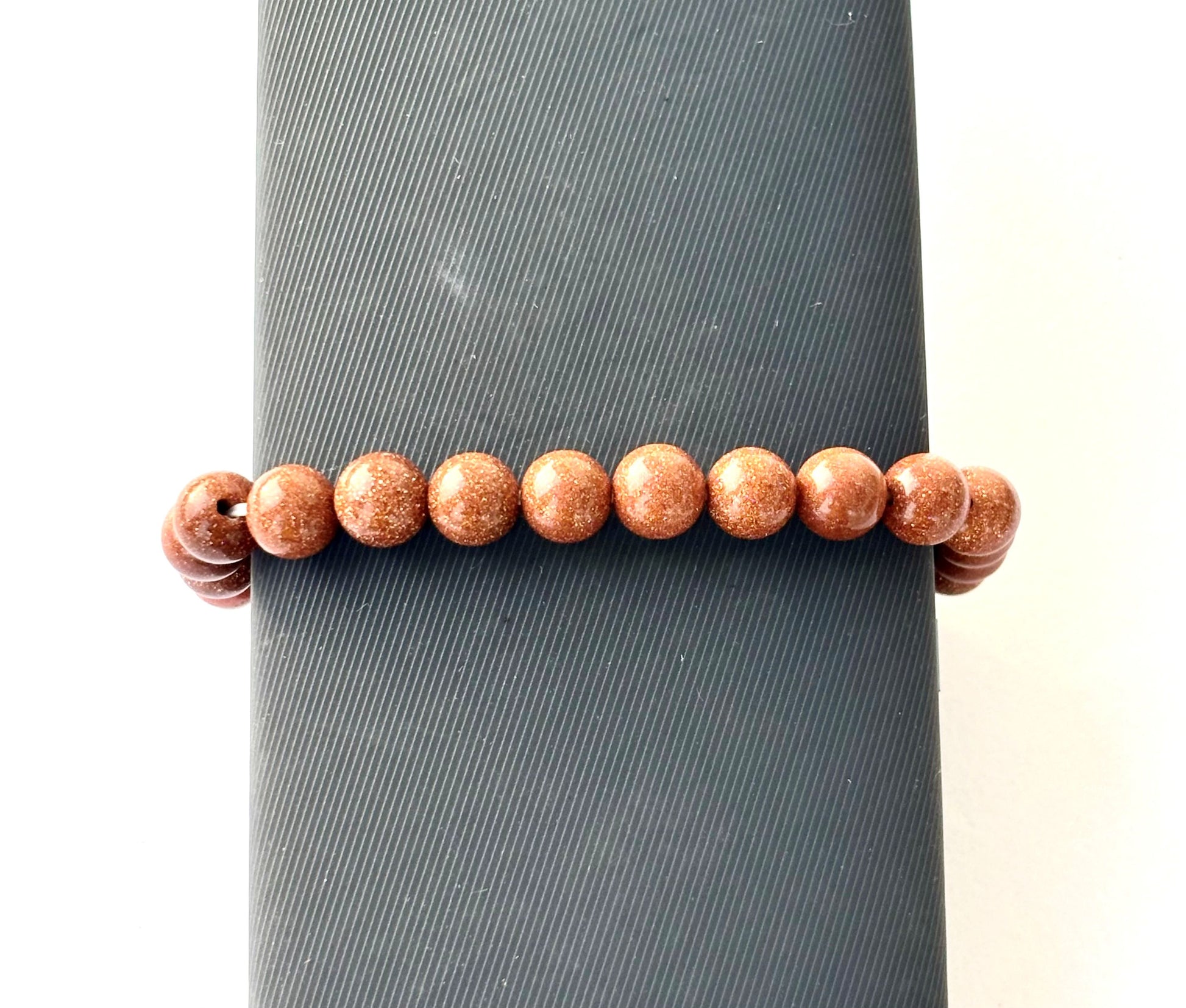 Illuminate your style and boost your confidence with our shimmering Brown Goldstone gemstone bracelet, known for its ambition-boosting properties and beautiful sparkly inclusions. Sold by single piece. Size 8mm beads. Free size.