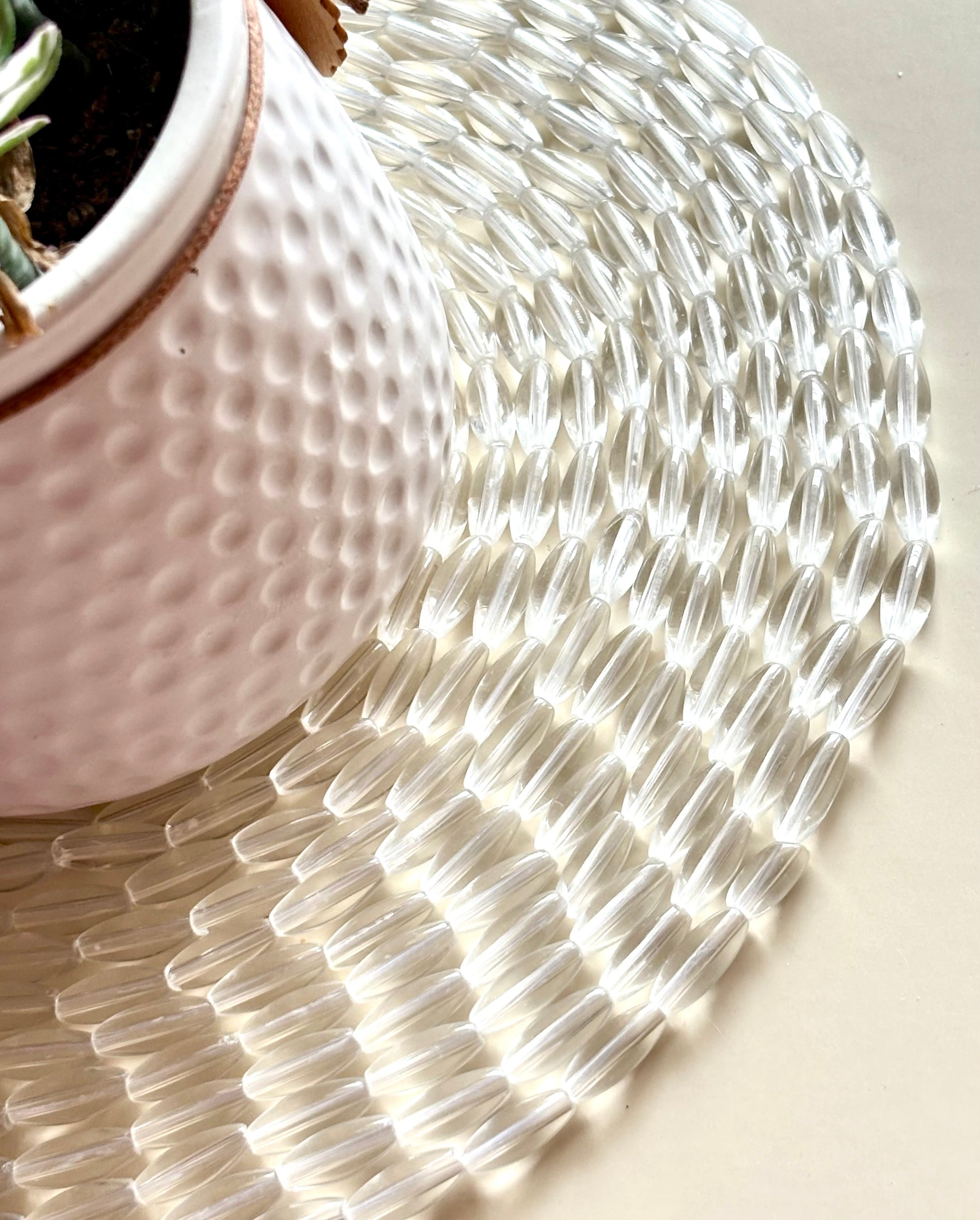 Discover our beautiful clear mini glass capsule beads, perfect for crafting delicate necklaces, bracelets, earrings, and more. Sold by single strand. Approximately 27 beads per line measuring 15 inches.
