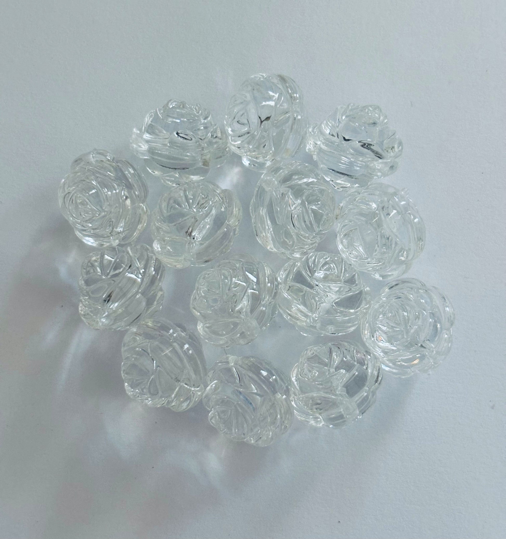 Acrylic beads with a beautiful carved rose design, perfect for adding an elegant, floral touch to your handmade jewelry. Pack of 10 beads. Size 20MM.