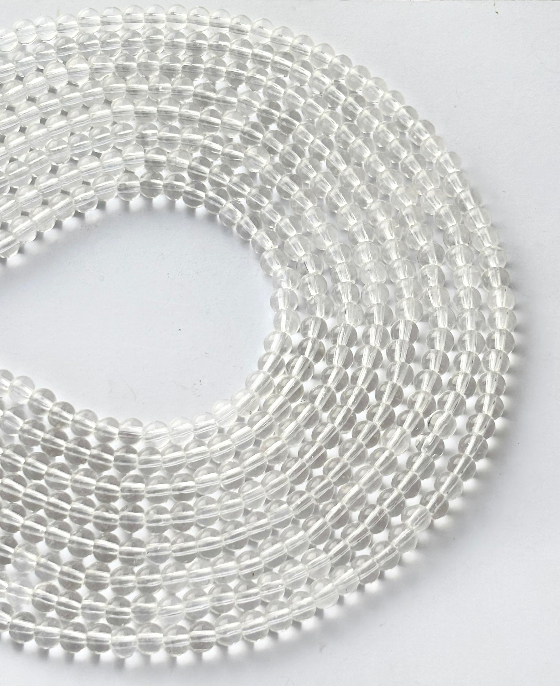 Discover sparkling clear transparent 6mm smooth round glass beads, perfect for elegant jewelry making, crafting, and DIY projects. High-quality and versatile for dazzling creations. Sold by single strand. Approximately 71 beads per line measuring 15 inches.