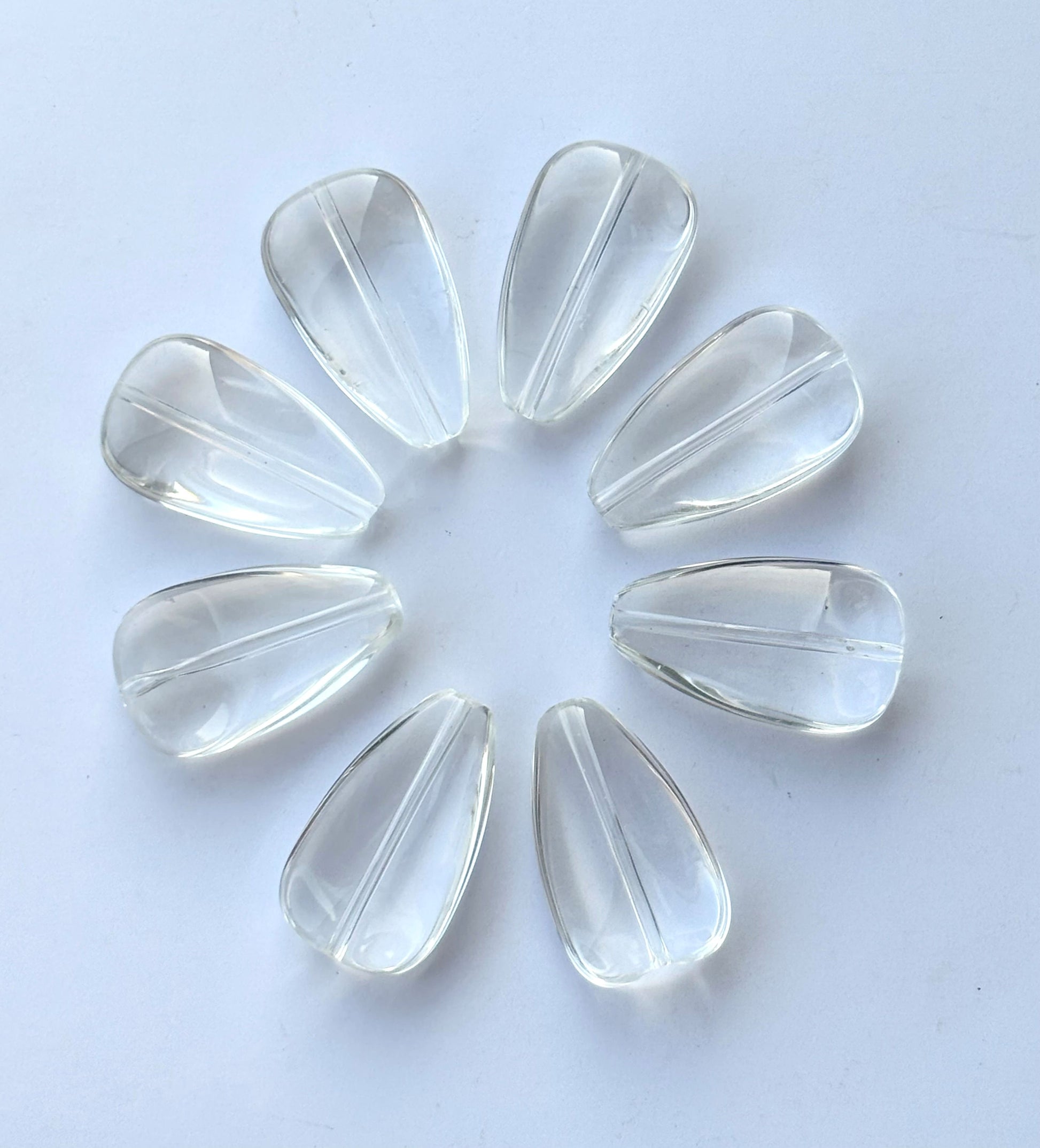 Shop transparent 25x14mm teardrop glass beads, perfect for jewelry making, crafts, and DIY projects. High-quality clear white drop beads for necklaces, earrings, and bracelets. Pack of 4 beads.
