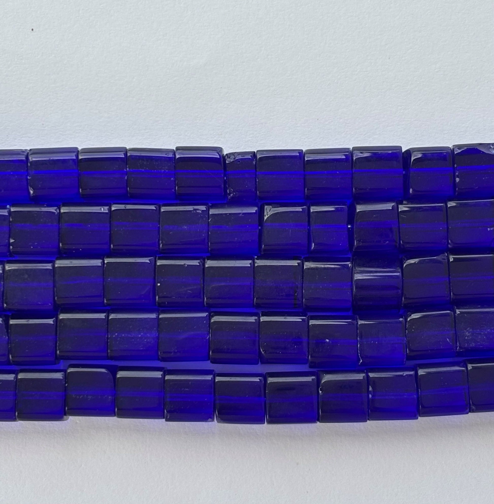 Vibrant cobalt blue cube glass beads, perfect for crafting modern and geometric necklaces, bracelets, and earrings. Pack pof 10 beads. Size 10x10 MM.