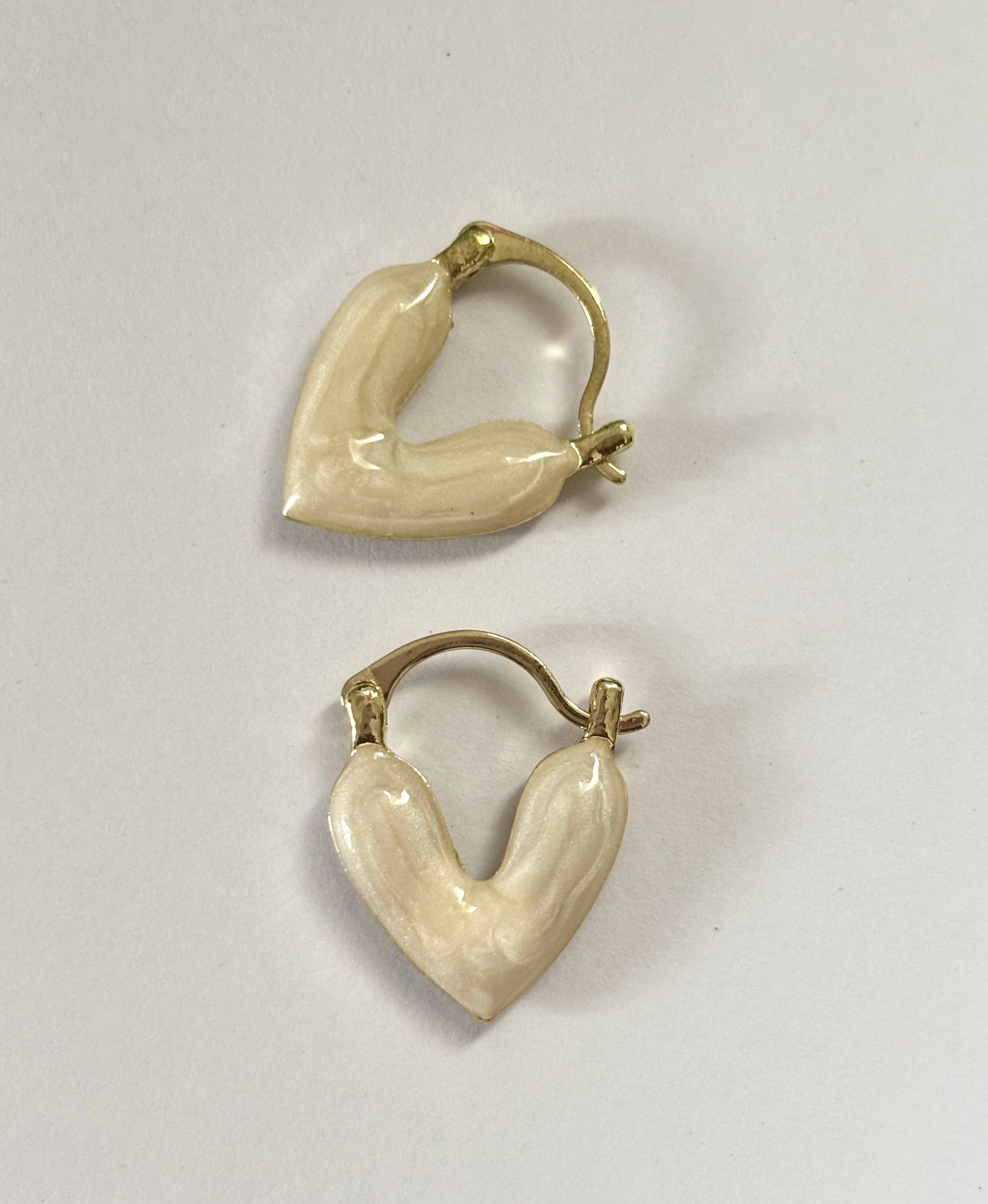 A playful and dainty pair of cream mini hoop earrings featuring a puffy heart. Sold by single pair. Only cream color available.