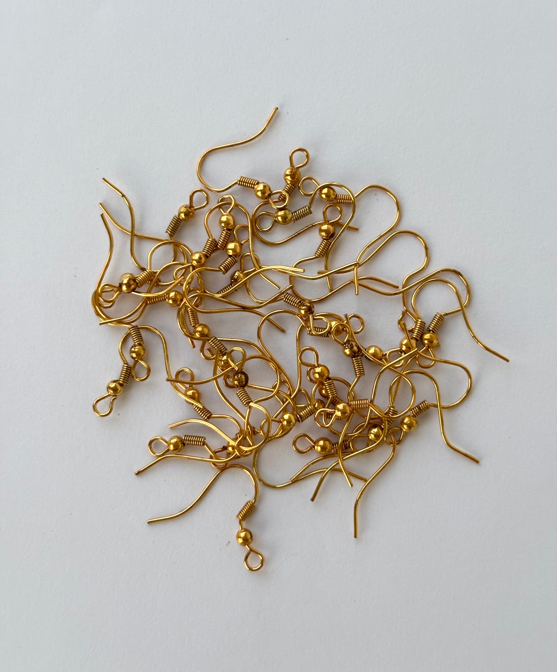 Stock your jewelry-making kit with these essential gold-plated earring hooks, providing a classic and secure foundation for all your handmade designs. Pack of 100 pairs.
