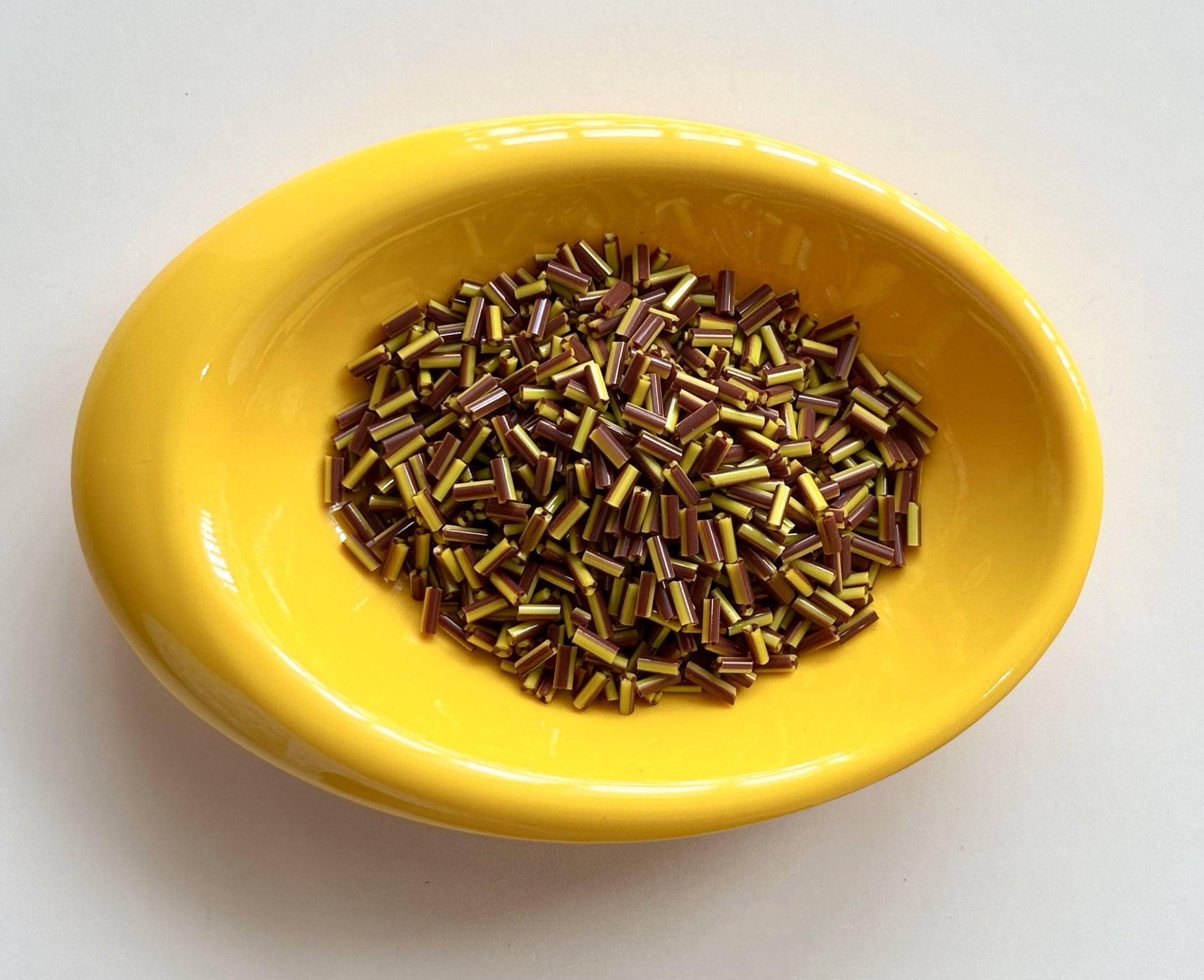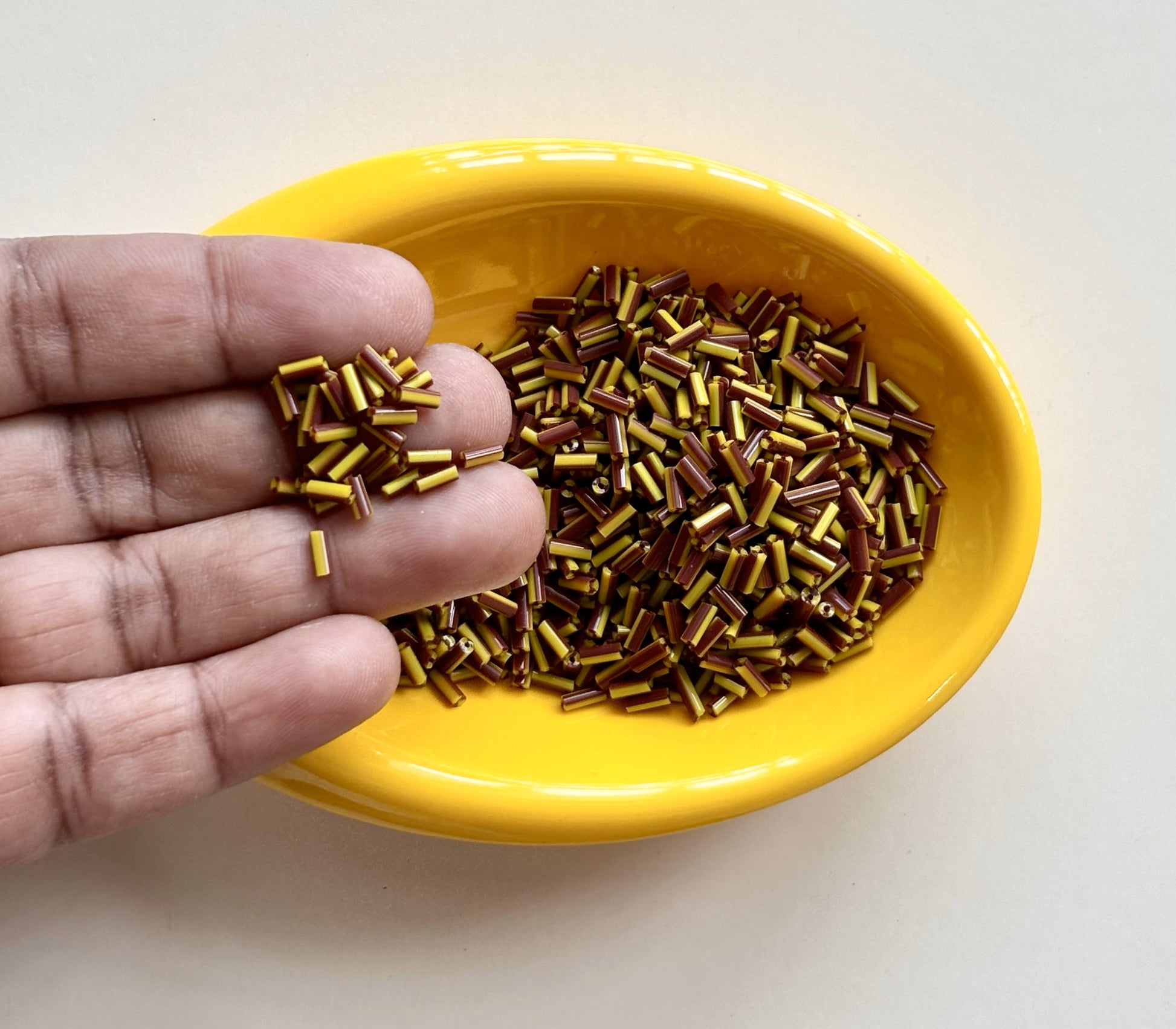 Discover vibrant striped glass beads, perfect for jewelry making, crafts, and DIY projects. These beads feature stunning dark red and dark yellow tones for eye-catching designs. Pack of 20 grams.
