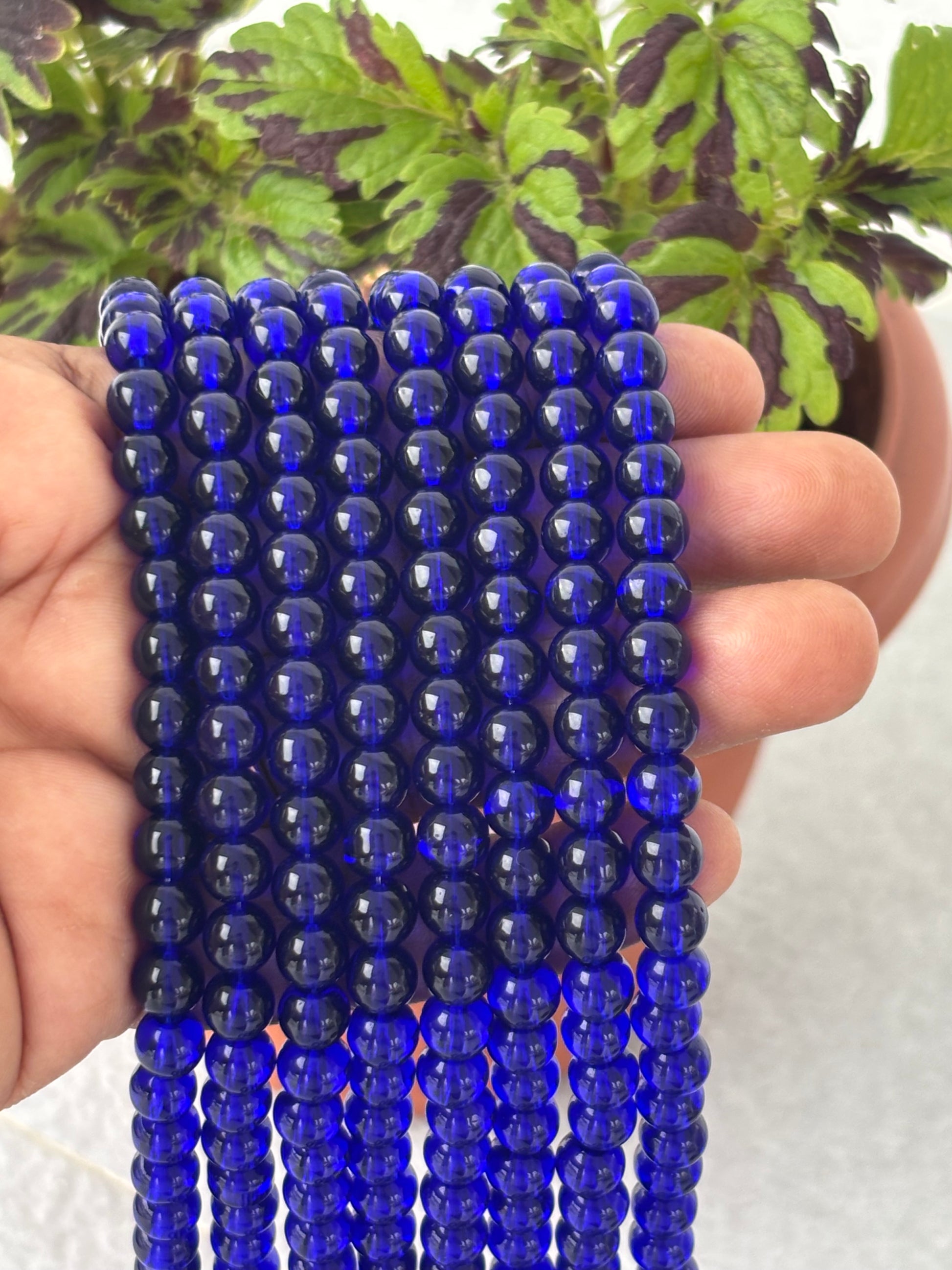 Discover vibrant deep blue 6mm smooth round glass beads, perfect for jewelry making, crafting, and DIY projects. High-quality and versatile for stunning creations. Sold by TWO strands. Approximately 68 beads per line measuring 15 inches.
