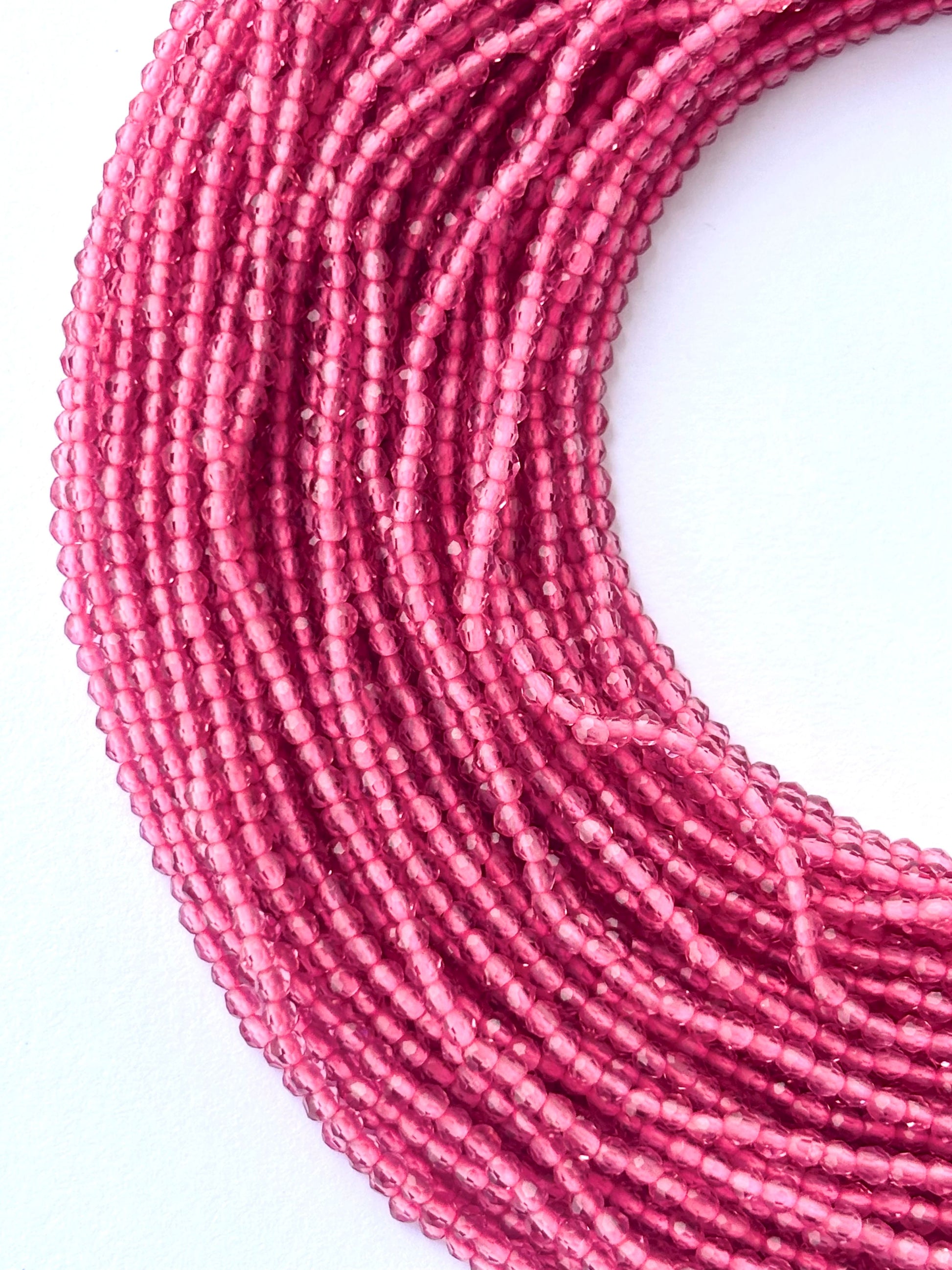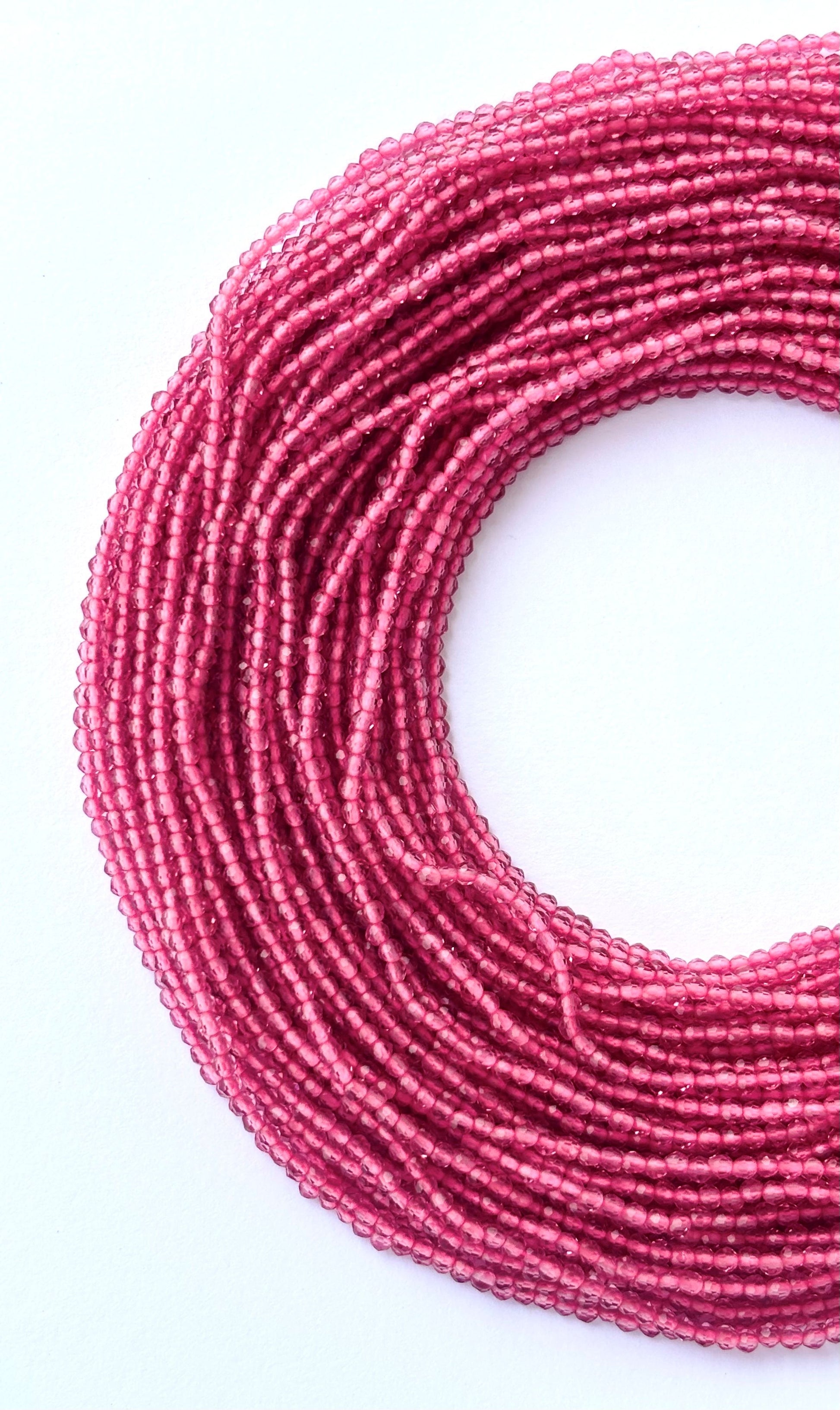 Discover rich, deep pink faceted hydro beads, perfect for adding a bold and luxurious touch to your unique jewelry creations. Pack of 5 strands; length 14inches; size 2mm; total of 950 beads approximately.