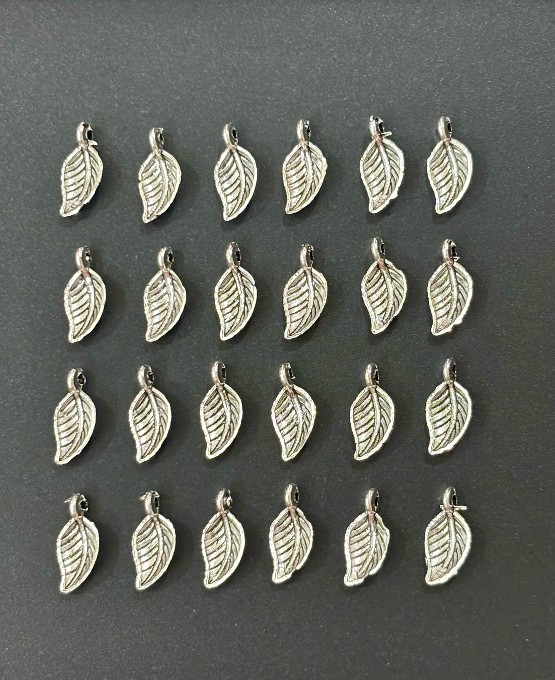 Create stunning nature-themed jewelry with our intricately detailed silver leaf charms. Perfect for adding an organic touch to necklaces, bracelets, earrings, and other DIY crafting projects. Pack of 25 pieces.