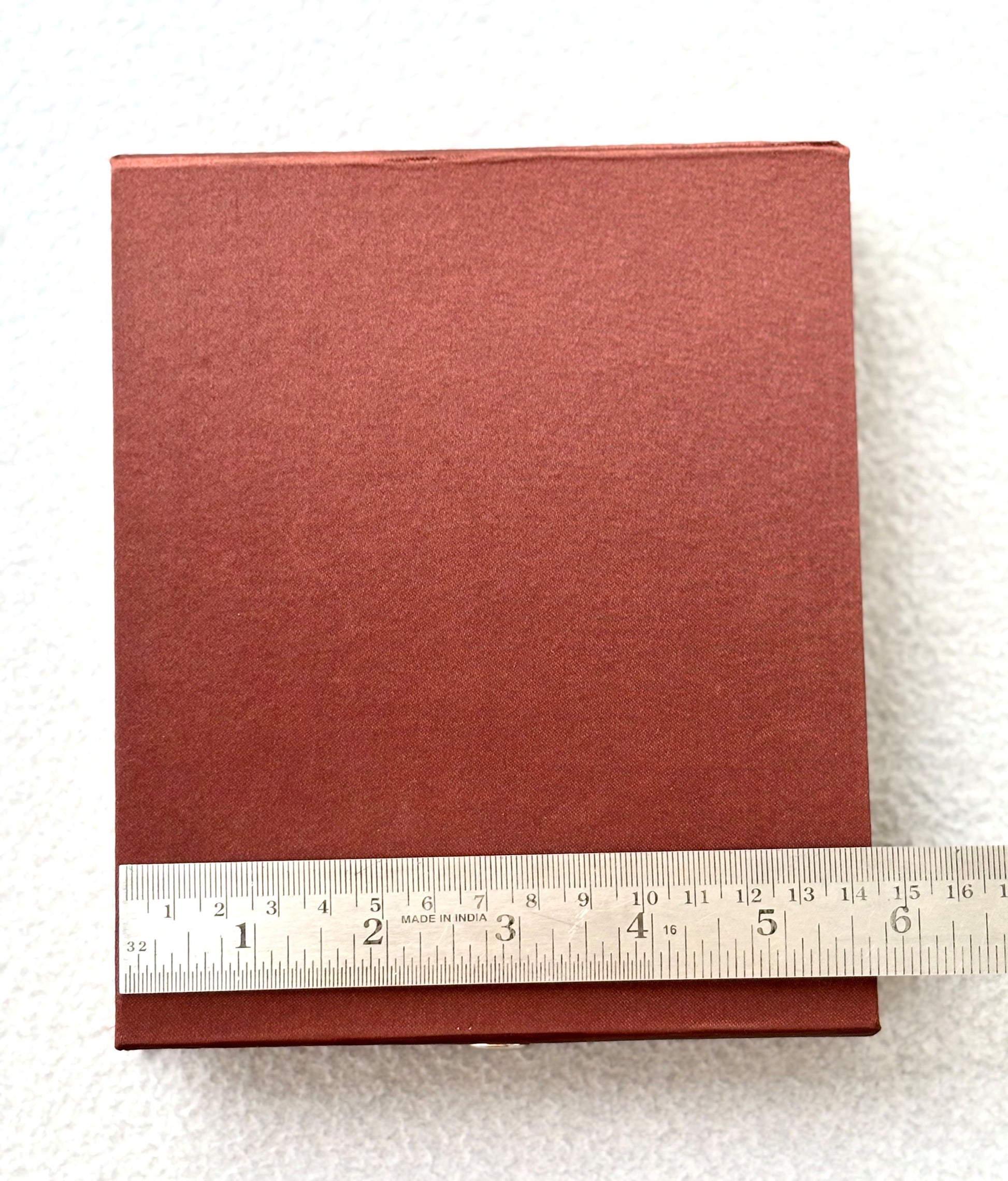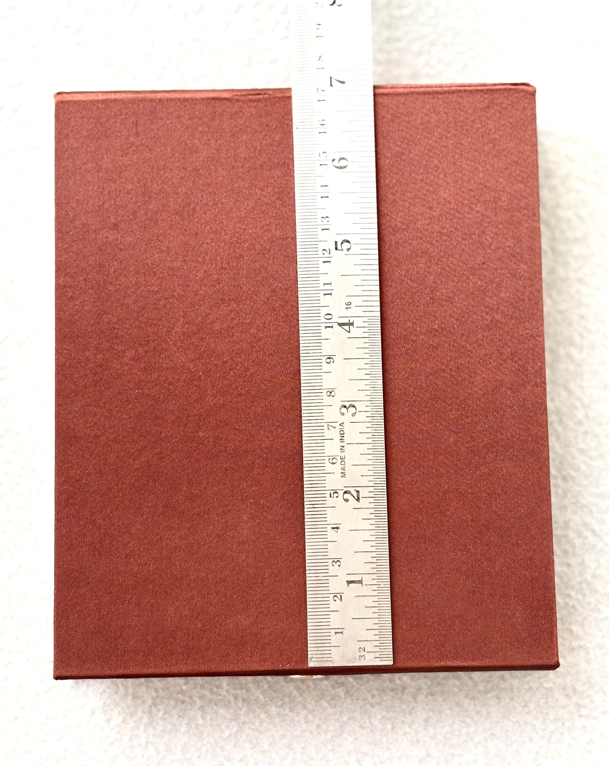 This elegant jewelry gift box features a rich brown fabric exterior with cream accents and a secure clasp, perfect for presenting necklaces, bracelets, and other special treasures. LxBxH: 17x14.5x3 (cms).