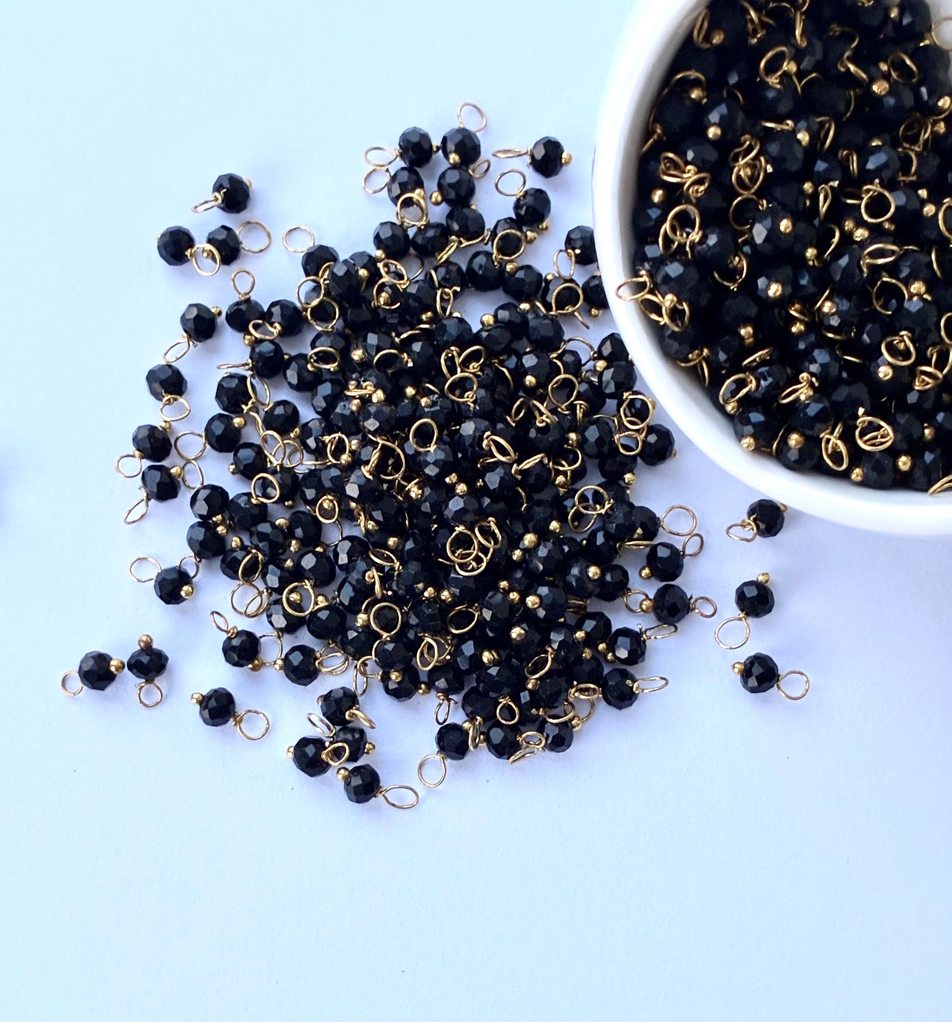 Create elegant handmade jewelry with these sparkling, deep black faceted bead charms, featuring allergy-free silver wire wrapping. Pack of 100 pieces.
