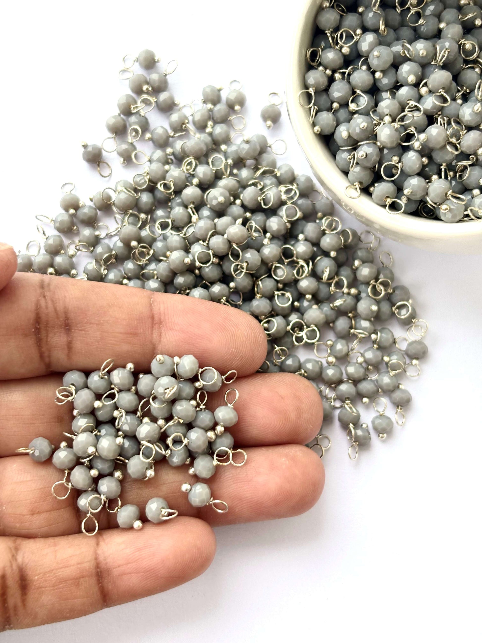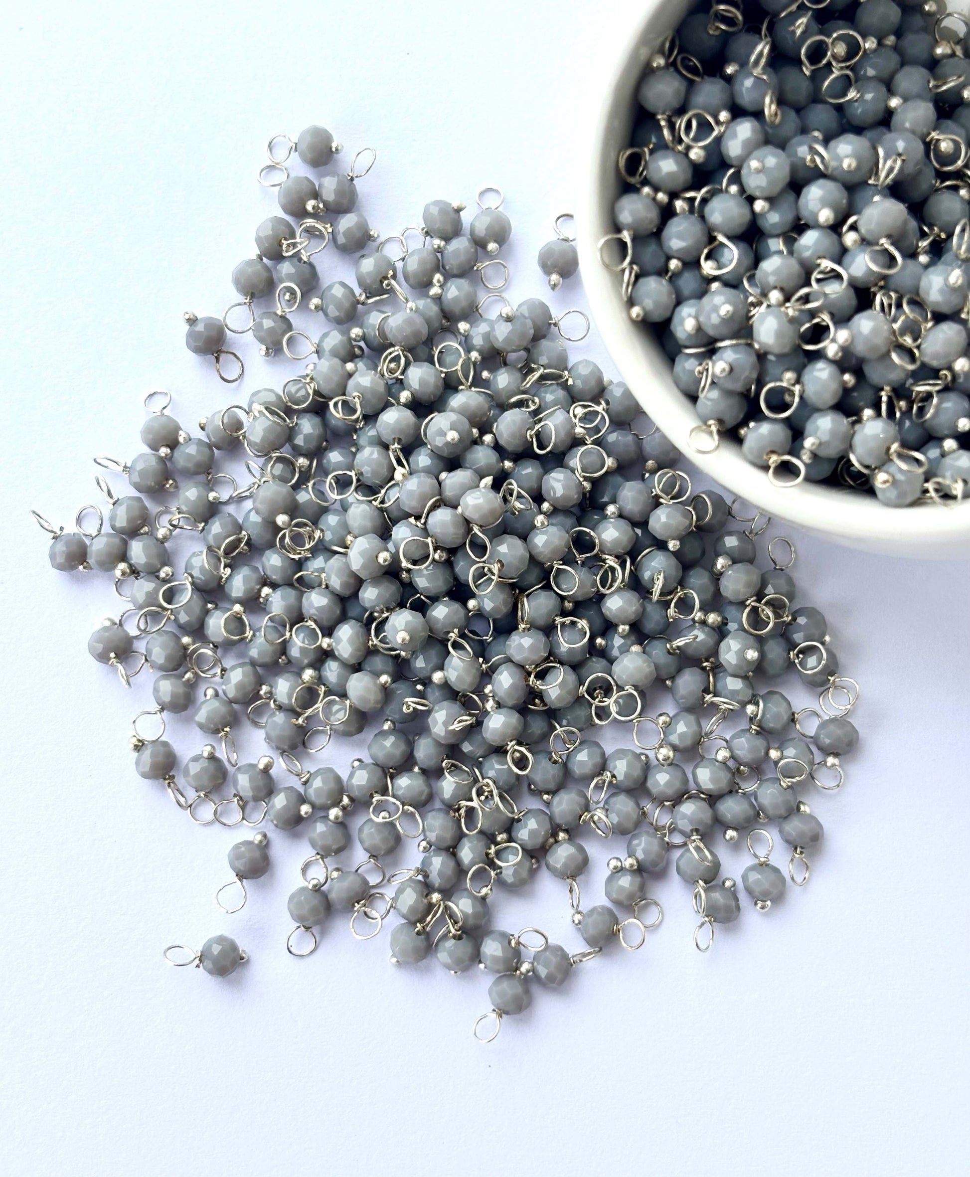 Create elegant handmade jewelry with these sparkling, chrome gray faceted bead charms, featuring silver wire wrapping. Pack of 100 pieces.