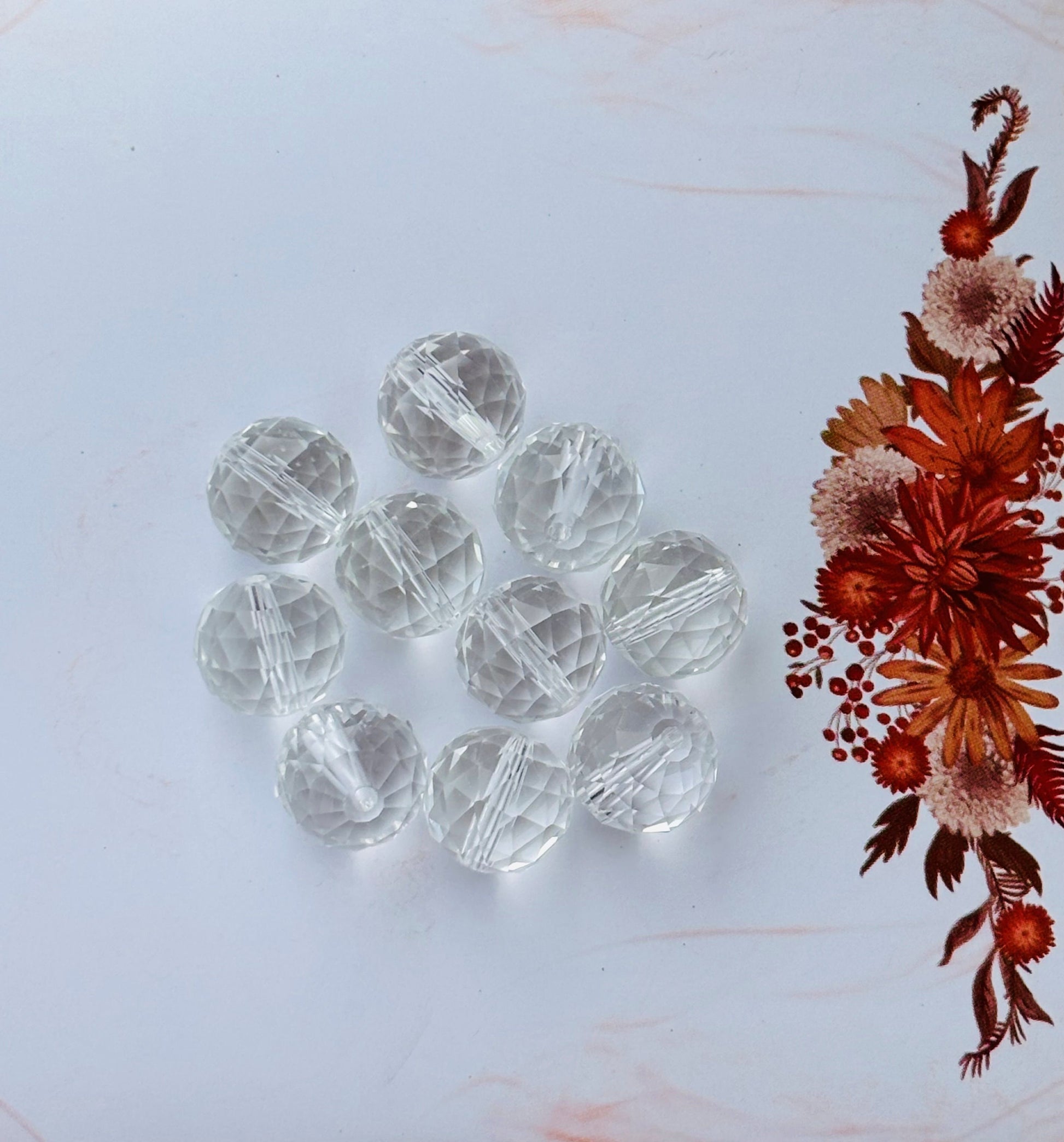 Faceted Clear Crystal Glass Round Beads 16MM for Jewelry Making