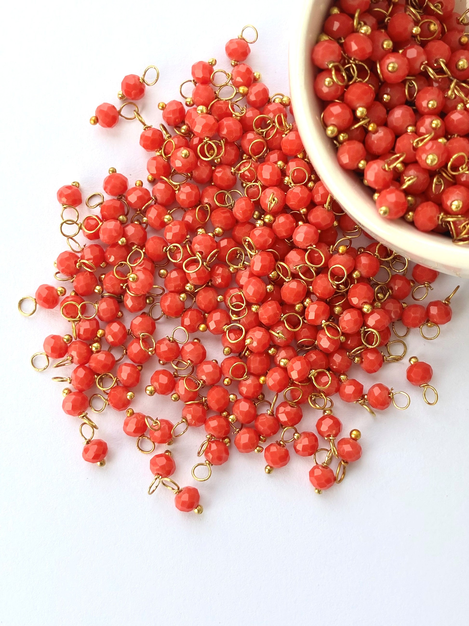Craft vibrant handmade jewelry with these stunning, faceted coral bead charms, featuring allergy-free gold wire wrapping. Each charm features a perfectly formed and securely closed loop, ensuring a professional finish. Pack of 100 pieces.