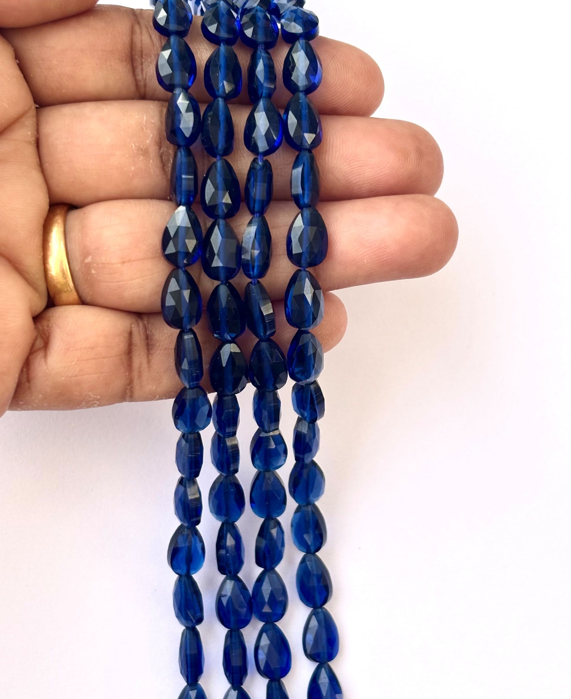 Faceted Deep Blue Agate Teardrop Beads for Jewelry Making