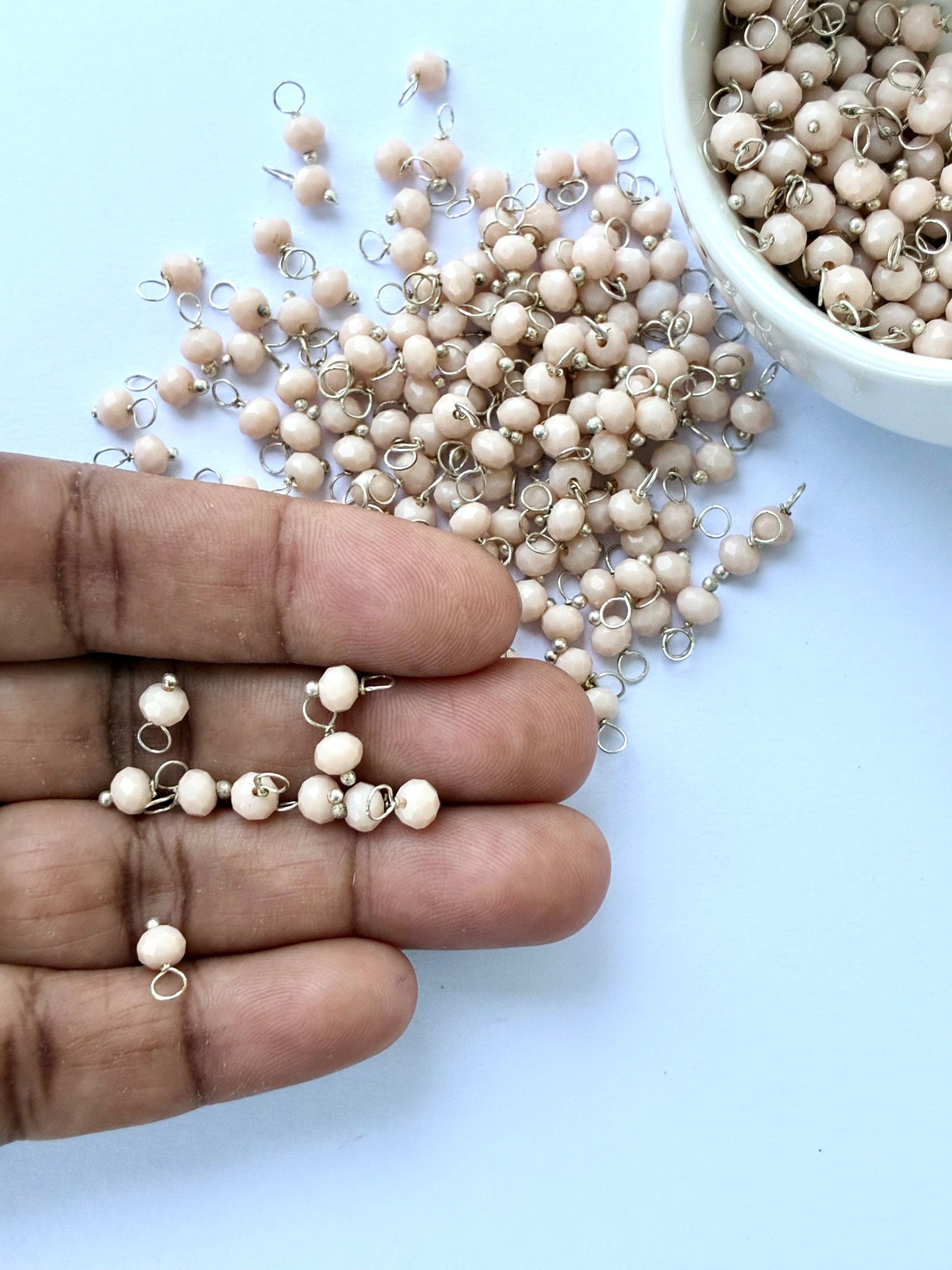 Create delicate and romantic handmade jewelry with these sparkling, faceted dusty rose bead charms, featuring allergy-free silver wire wrapping. Pack of 100 pieces.