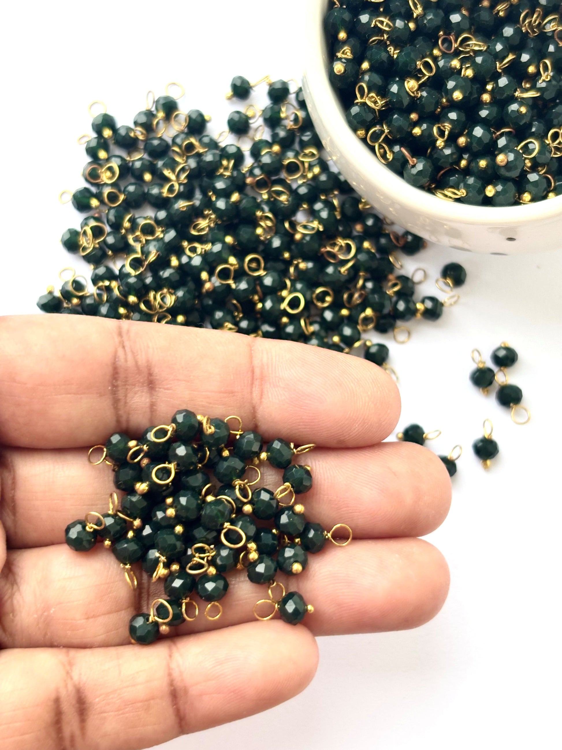 Create elegant handmade jewelry with these sparkling, sacremento green faceted bead charms, featuring golden wire wrapping. Pack of 100 pieces.