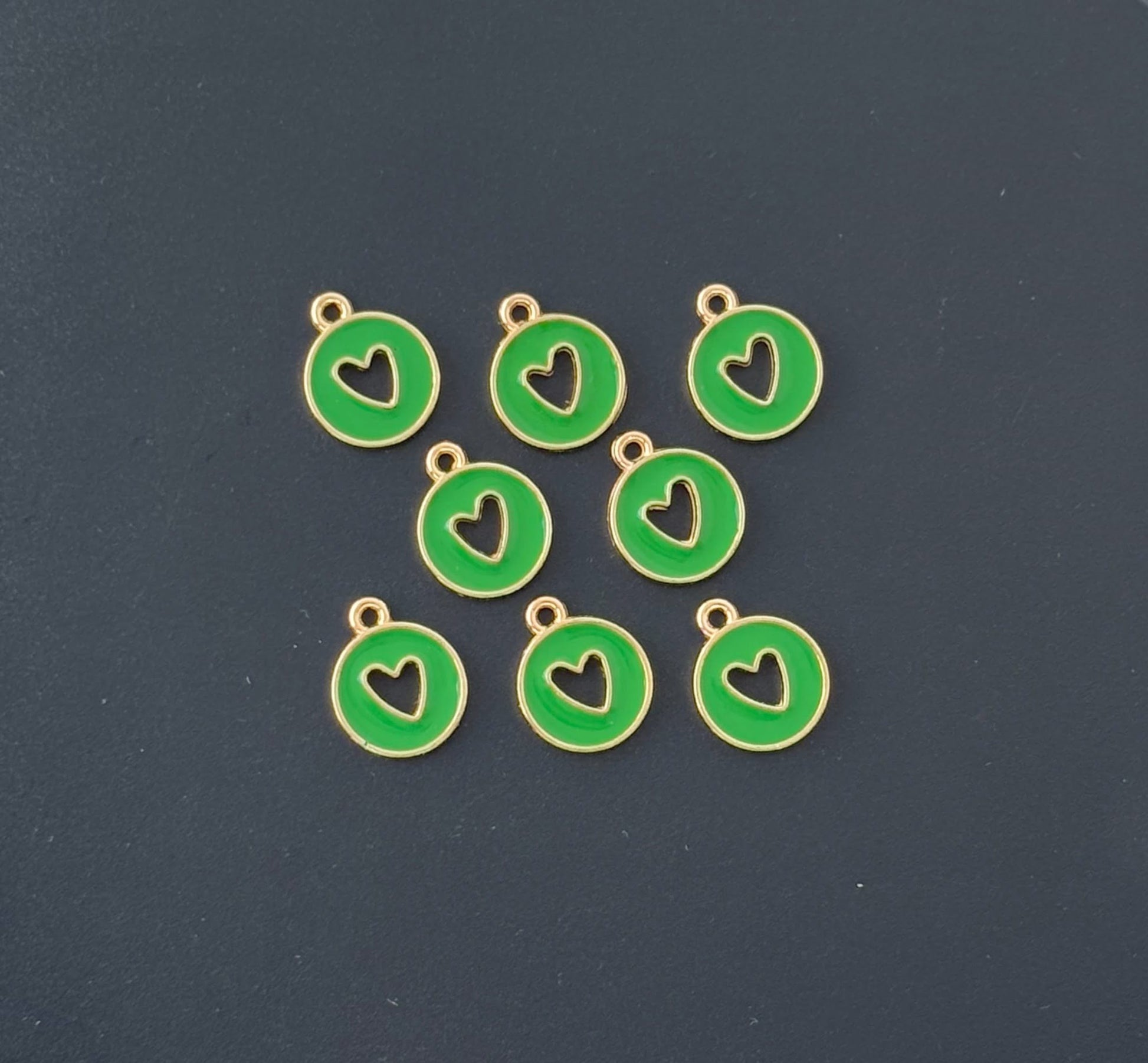 Four Pieces Enamelled Charms - Green Heart Cutout Charms