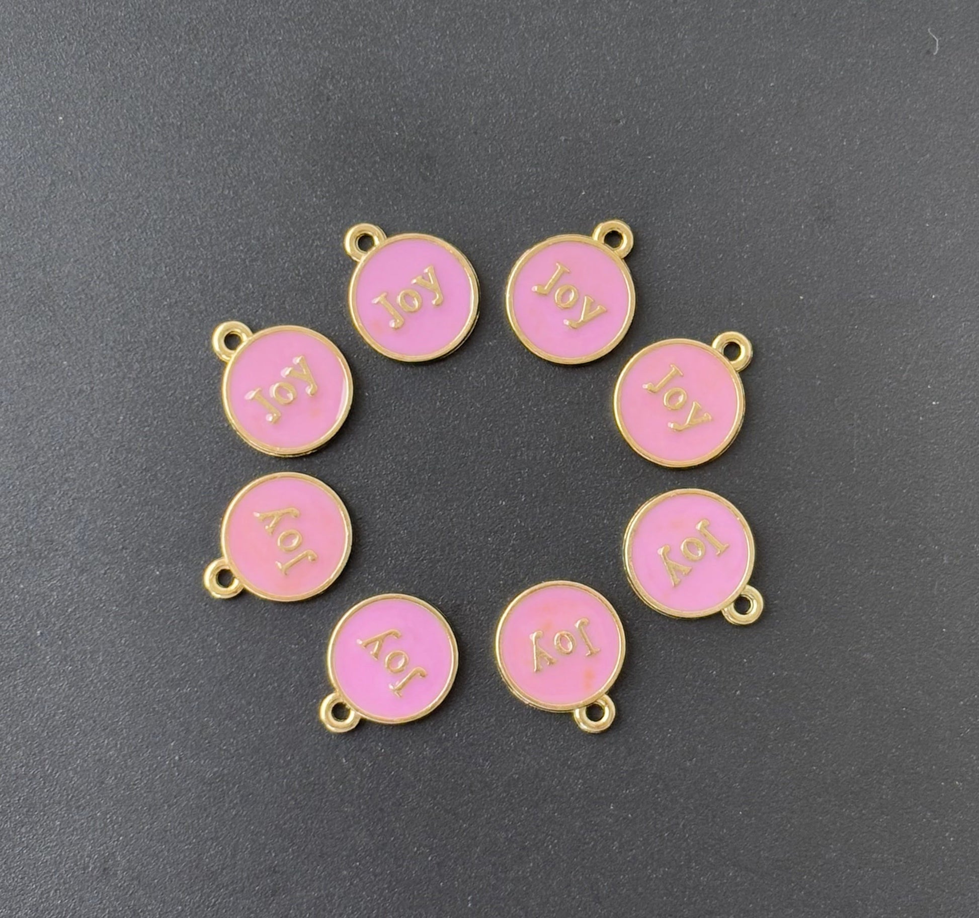 Celebrate happiness and creativity with these vibrant lavender enamel "Joy" charms. Pack of four charms.