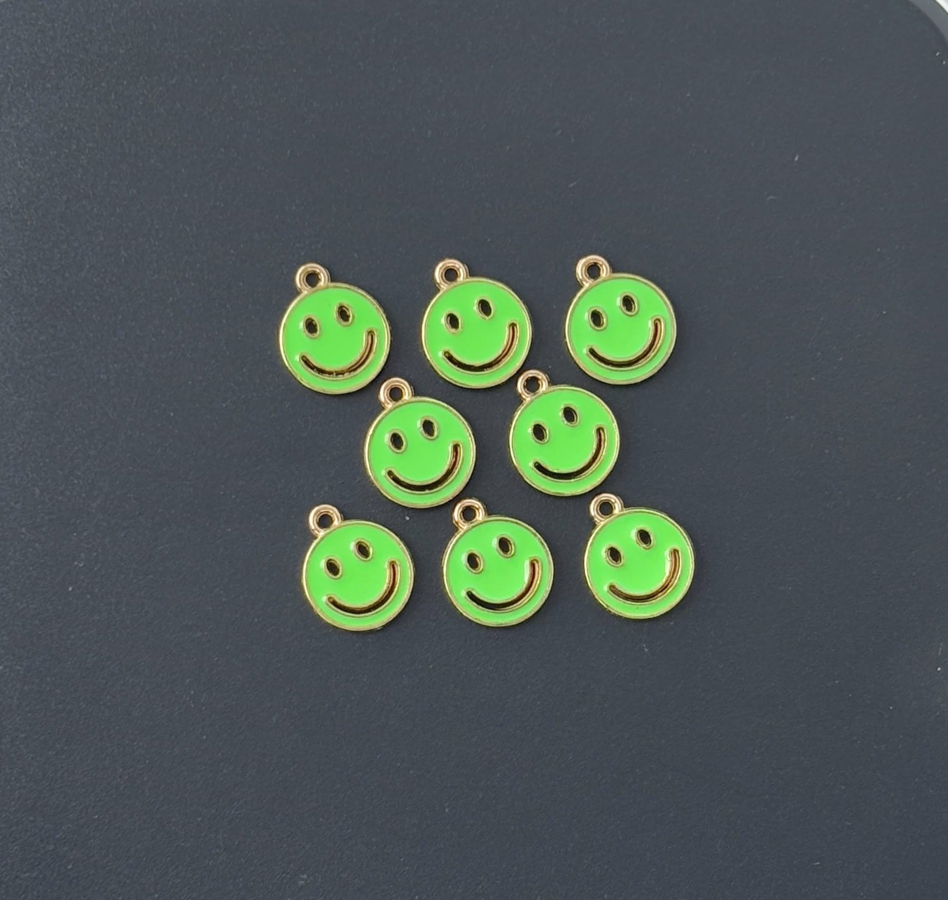 Four Pieces Enamelled Charms - Light Green Smiley Charms