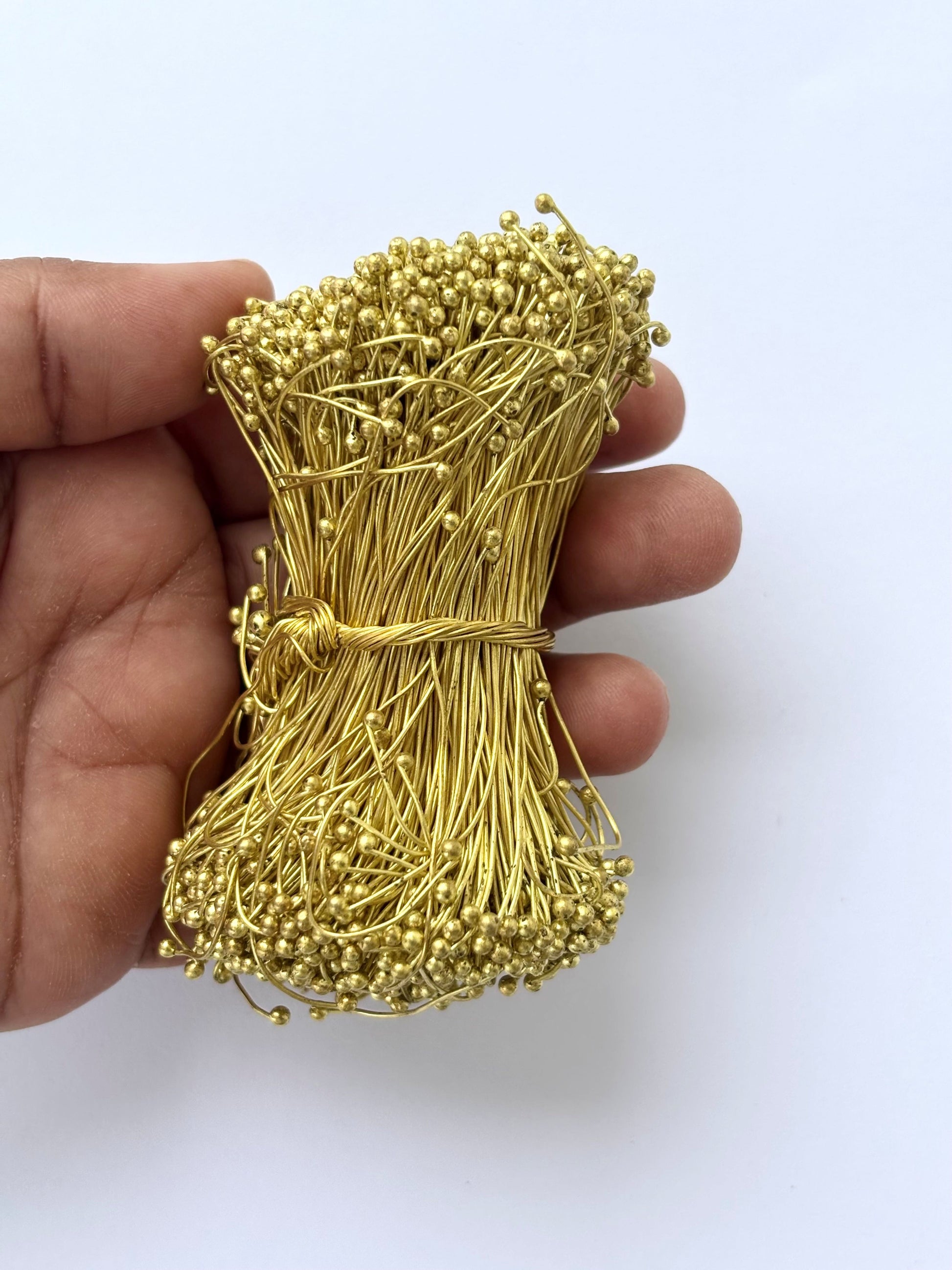 Create beautiful dangles for earrings, pendants, and charms with this essential bundle of high-quality, flexible gold ball head pins. Pack of 50 grams. Size 24 gauge or 0.51mm thickness. Length 70mm or 3 inches.
