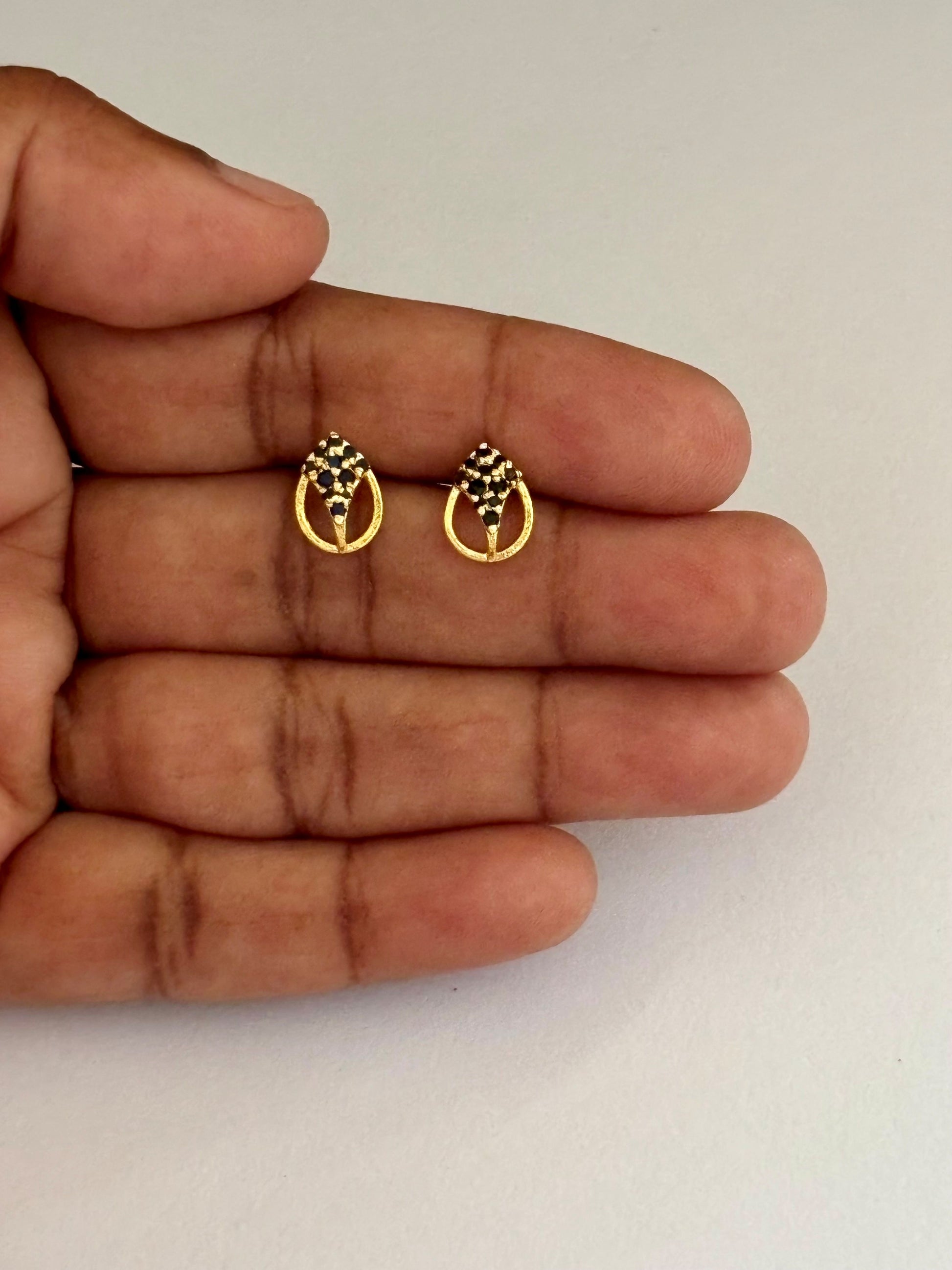 Elevate your modern style with these chic gold-plated stud earrings, featuring an elegant open-oval frame with a sparkling black stone cluster, all finished with a skin-friendly, allergy-free gold plating. Sold as a single pair.