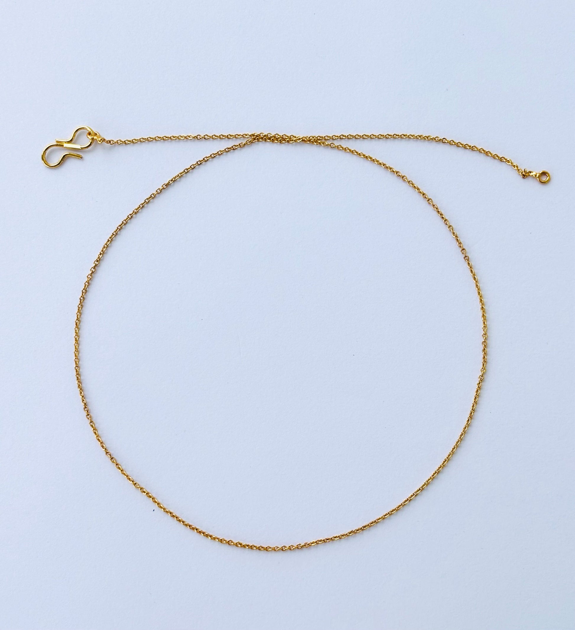 Embrace minimalist elegance with this ultra-fine and delicate gold-plated chain, the perfect versatile accessory for daily wear or layering. Total length 17 inches.
