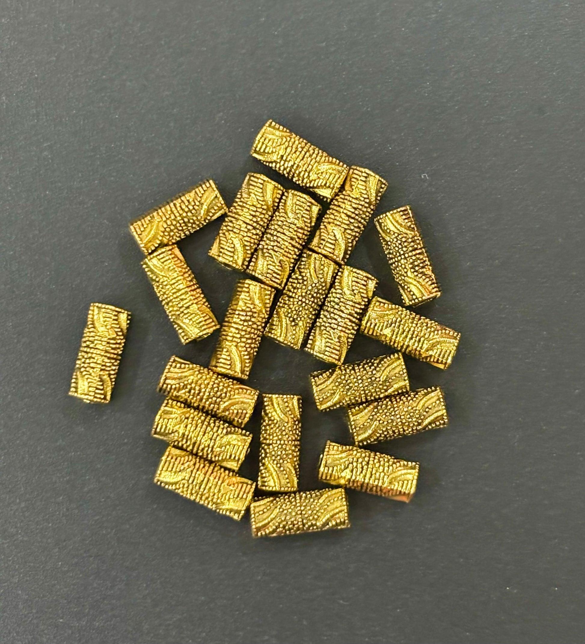 Discover elegant gold tube metal beads with intricate textured designs, perfect for jewelry making and DIY crafts. Pack of 20 pieces.