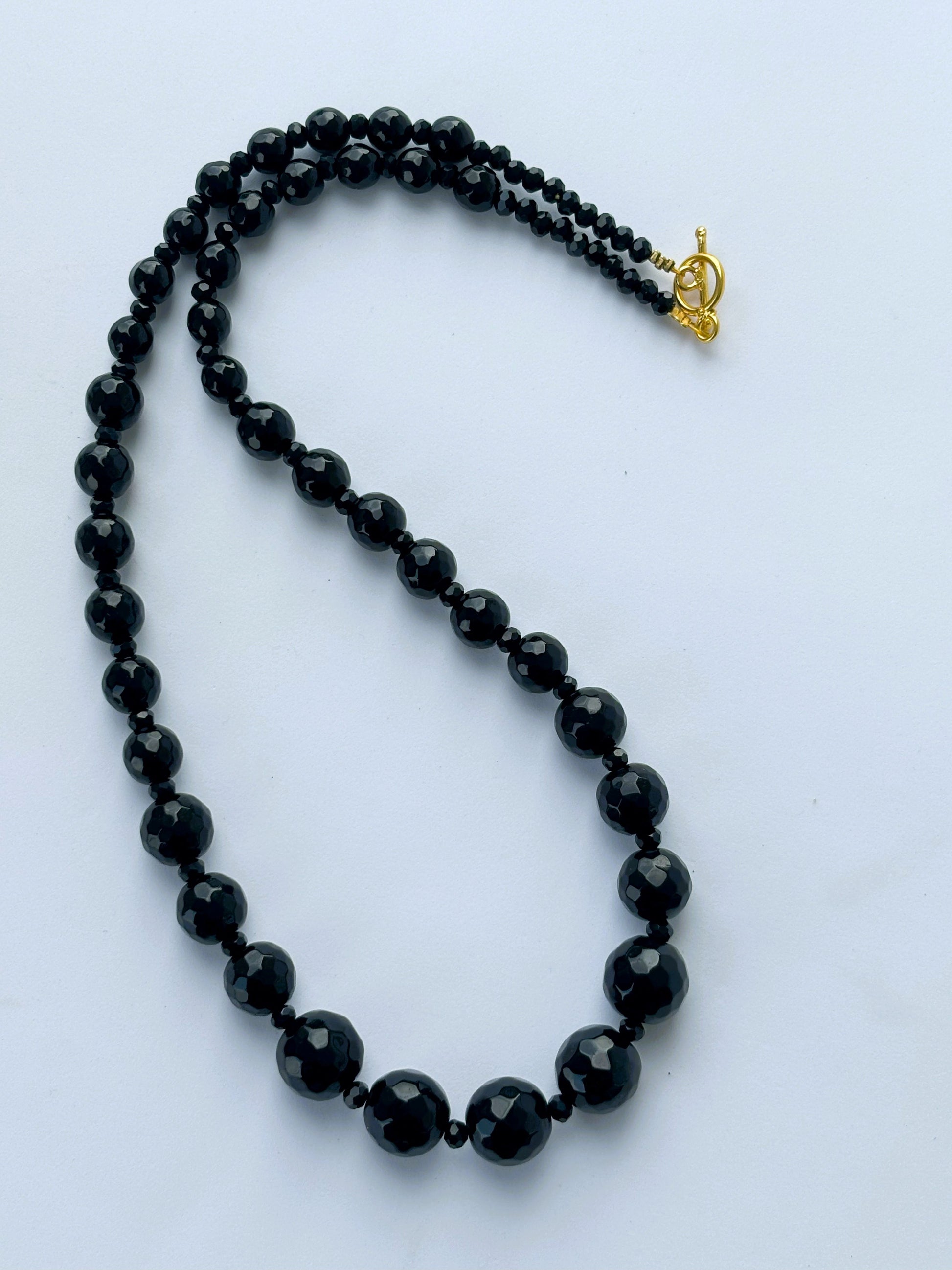 Handmade Graduated Black Onyx Gemstone Necklace