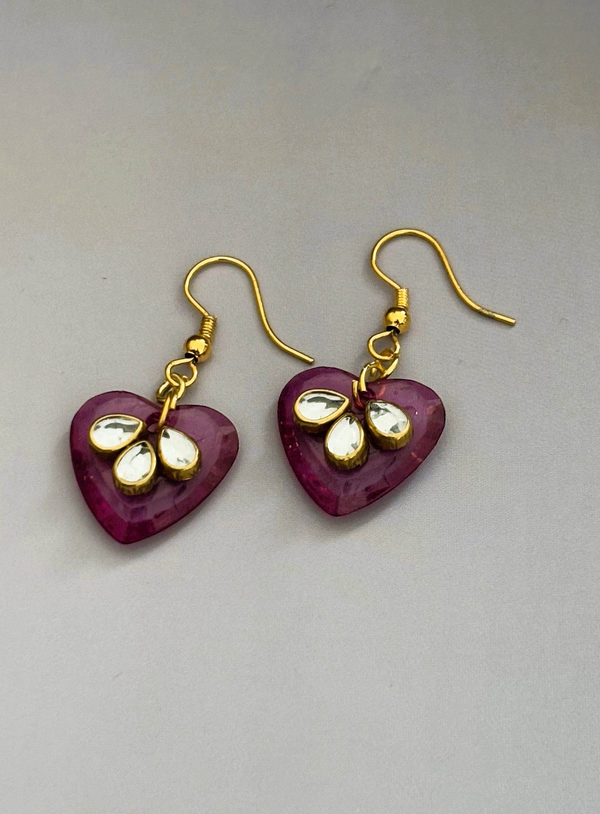 Handmade Indian Ethnic Pink Heart Kundan Earrings