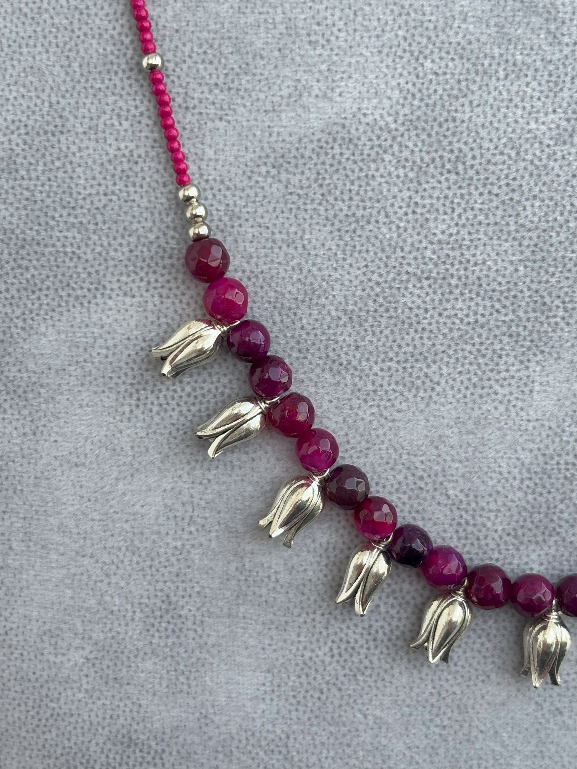 Handmade Oxidized Tulip and Magenta Stone Necklace Set