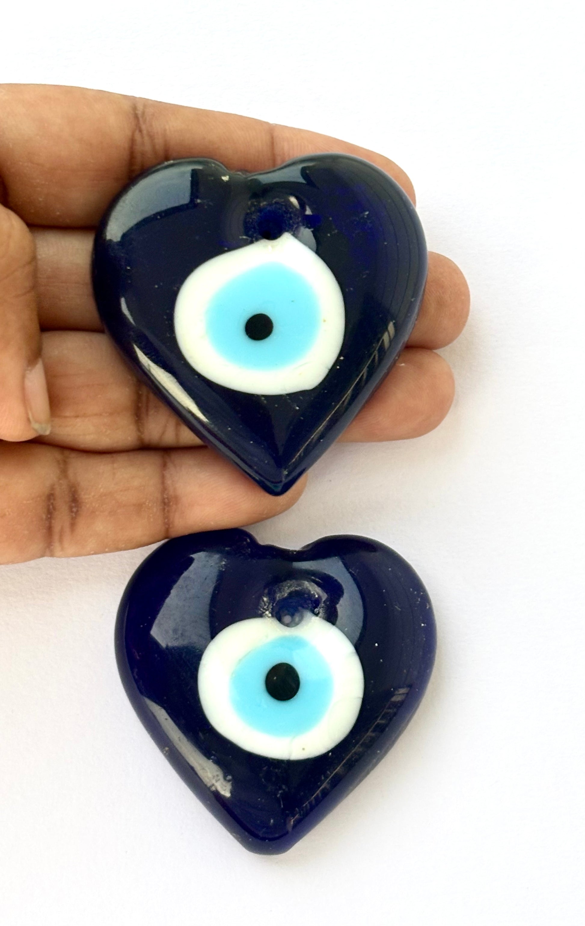 Heart-Shaped Blue Evil Eye Glass Charm 36MM - Love and Protection