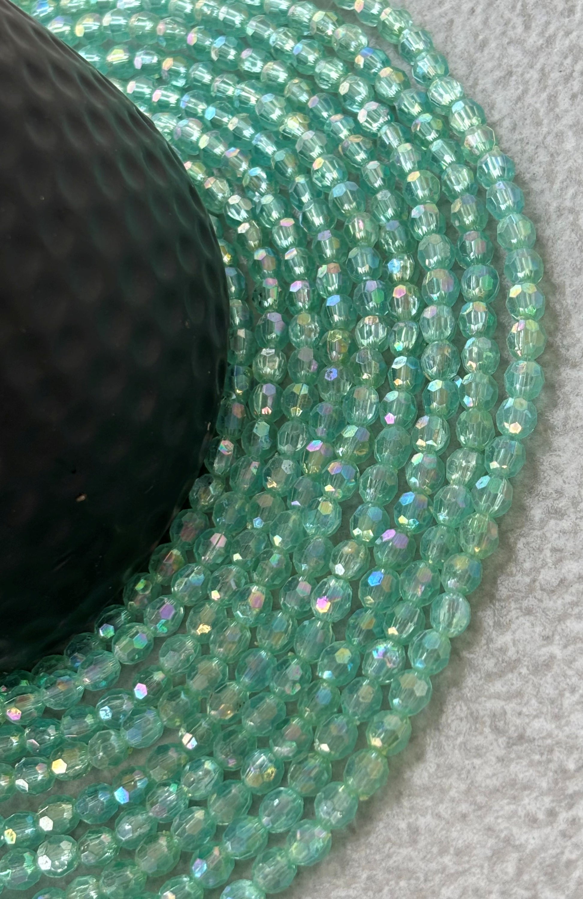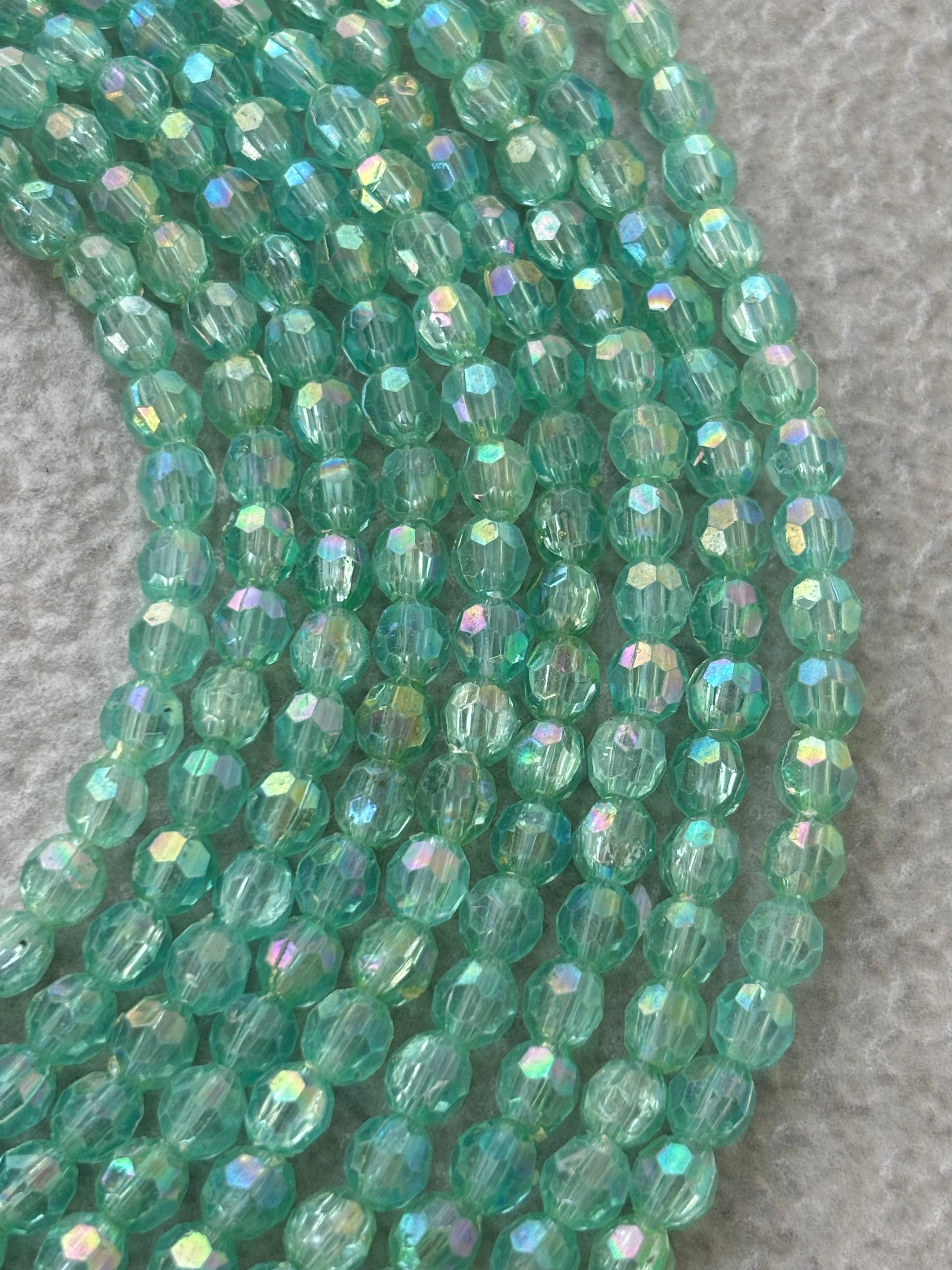 Discover delicate mint green faceted oval beads with an iridescent finish, perfect for adding subtle sparkle to your jewelry designs and craft projects. Size 5x6MM. Sold by single strand measuring 15 inches with 67 beads approximately.