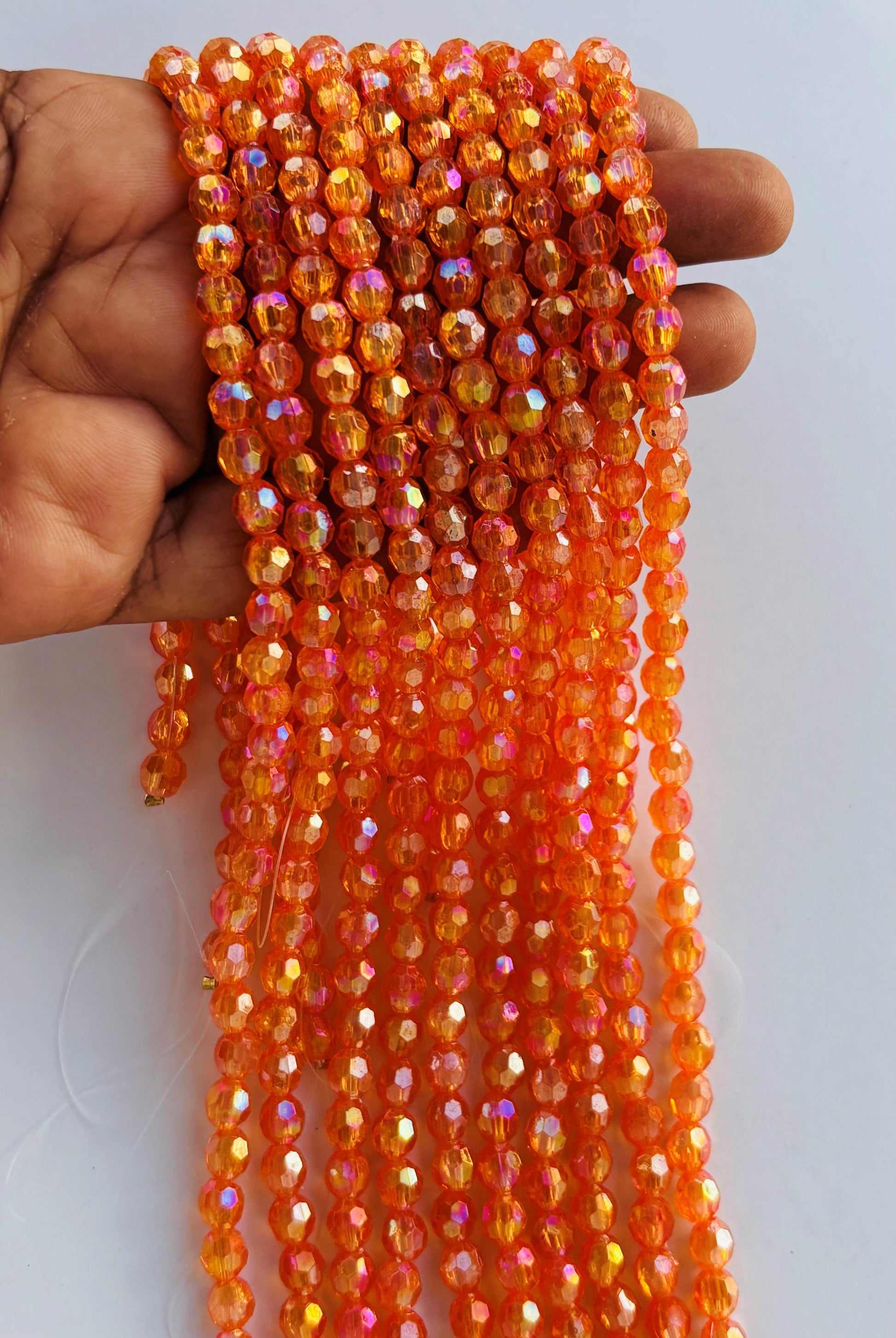 Discover orange faceted oval beads with a captivating iridescent finish, perfect for adding dazzling sparkle to your jewelry and craft projects. Size 5x6MM. Sold by single strand measuring 15 inches with 67 beads approximately.