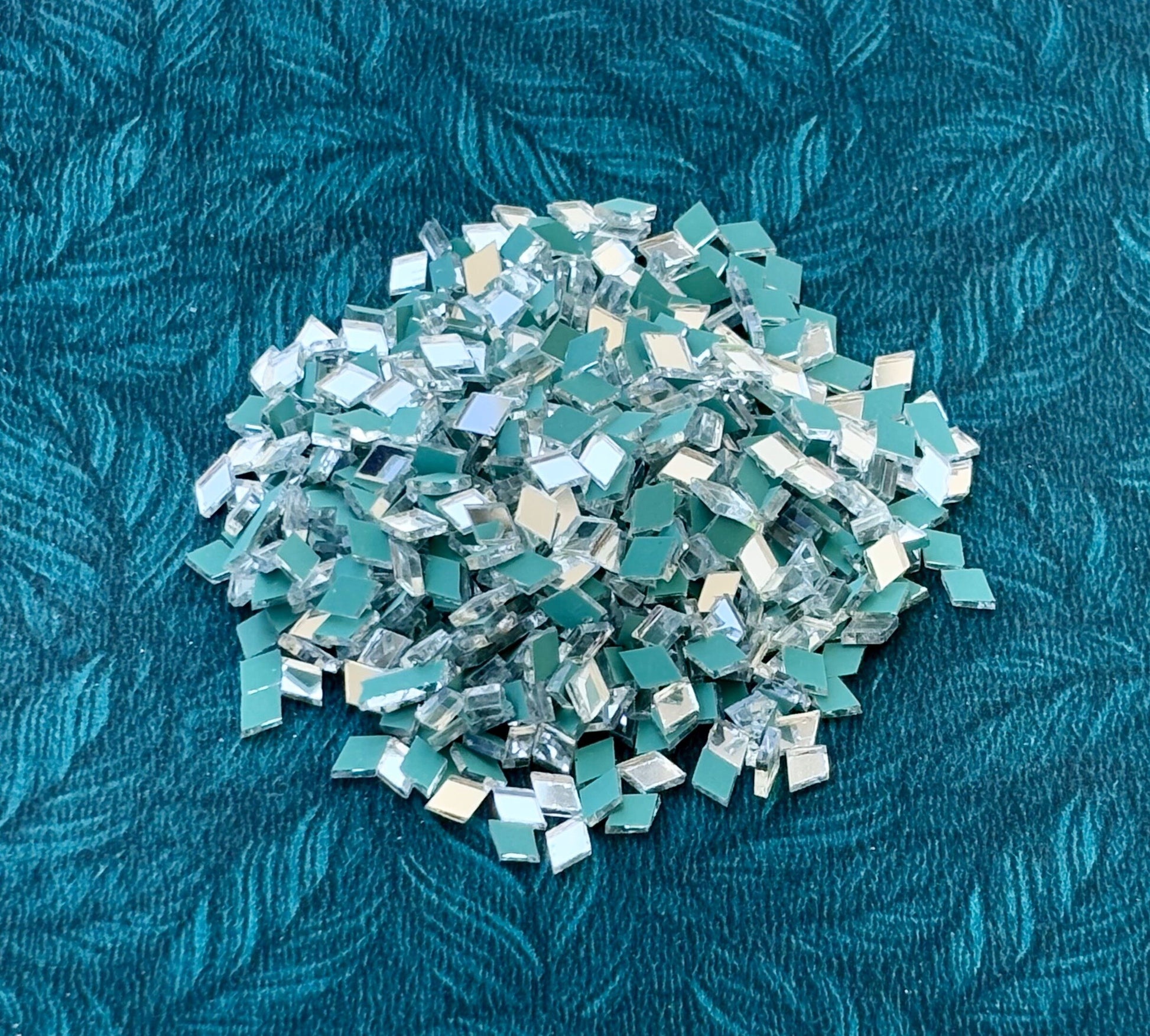 Find high-quality Kaju Katri or Rhombus shape glass mirror cut work for Lippan art, mandala patterns, and craft. Kaju Katri cut mirrors in silver finish are available in a size range of 4mm to 20mm. Perfect for DIY, home decor, and festival decoration.