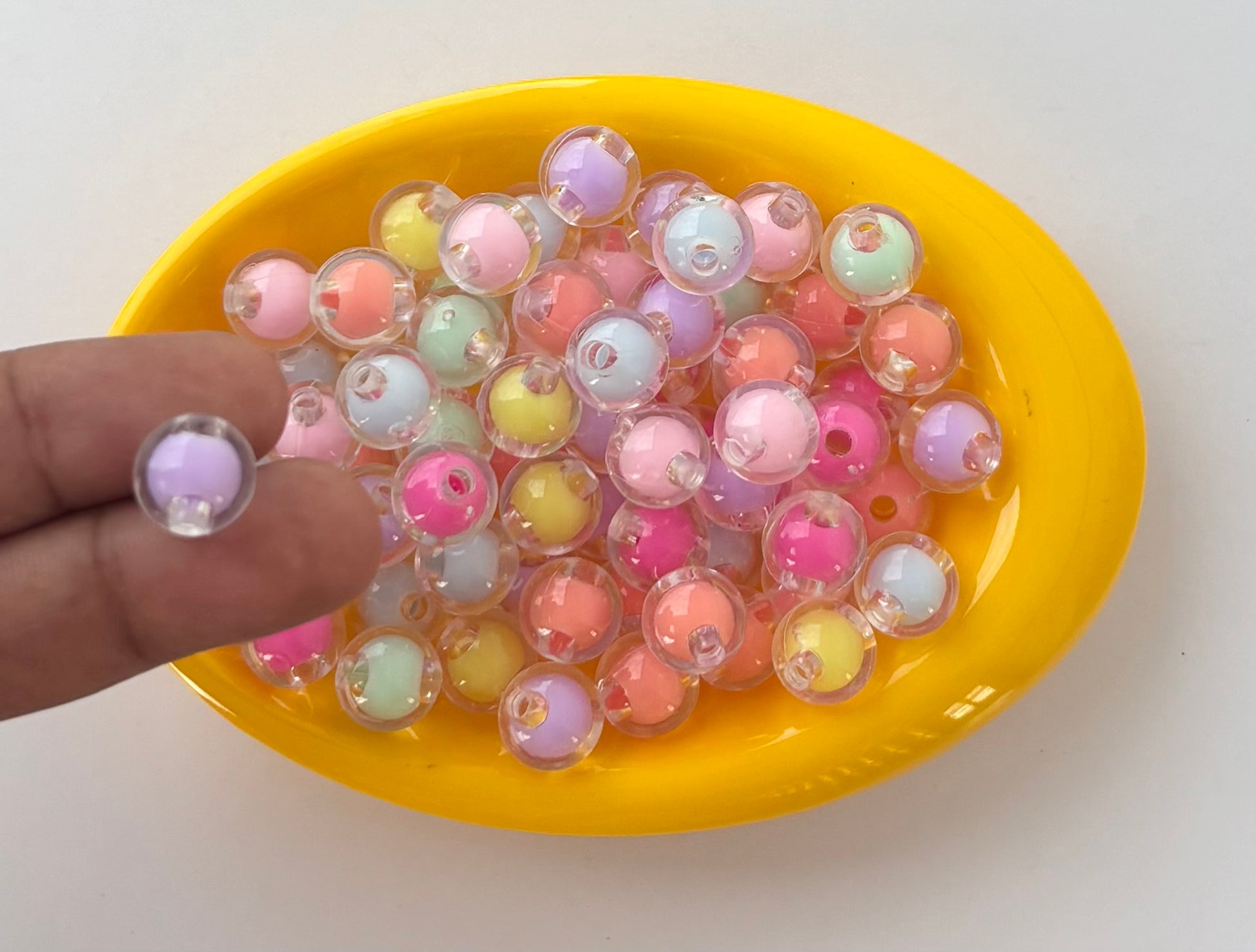 Discover a delightful assortment of large, translucent round beads in soft pastel hues, perfect for creating charming DIY jewelry, bracelets, kid-friendly crafts, and other decorative projects. Pack contains 20 beads approximately.