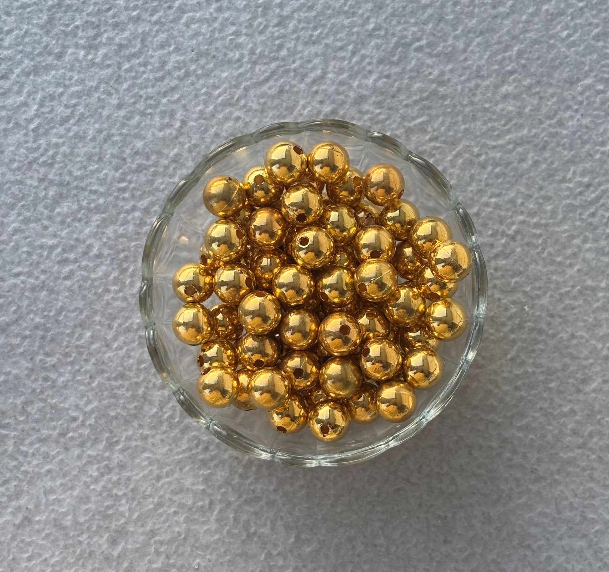 These 10mm shiny golden CCB round beads are perfect for adding a lightweight metallic accent to your necklaces, bracelets, and various jewelry designs. Pack of 25 grams.