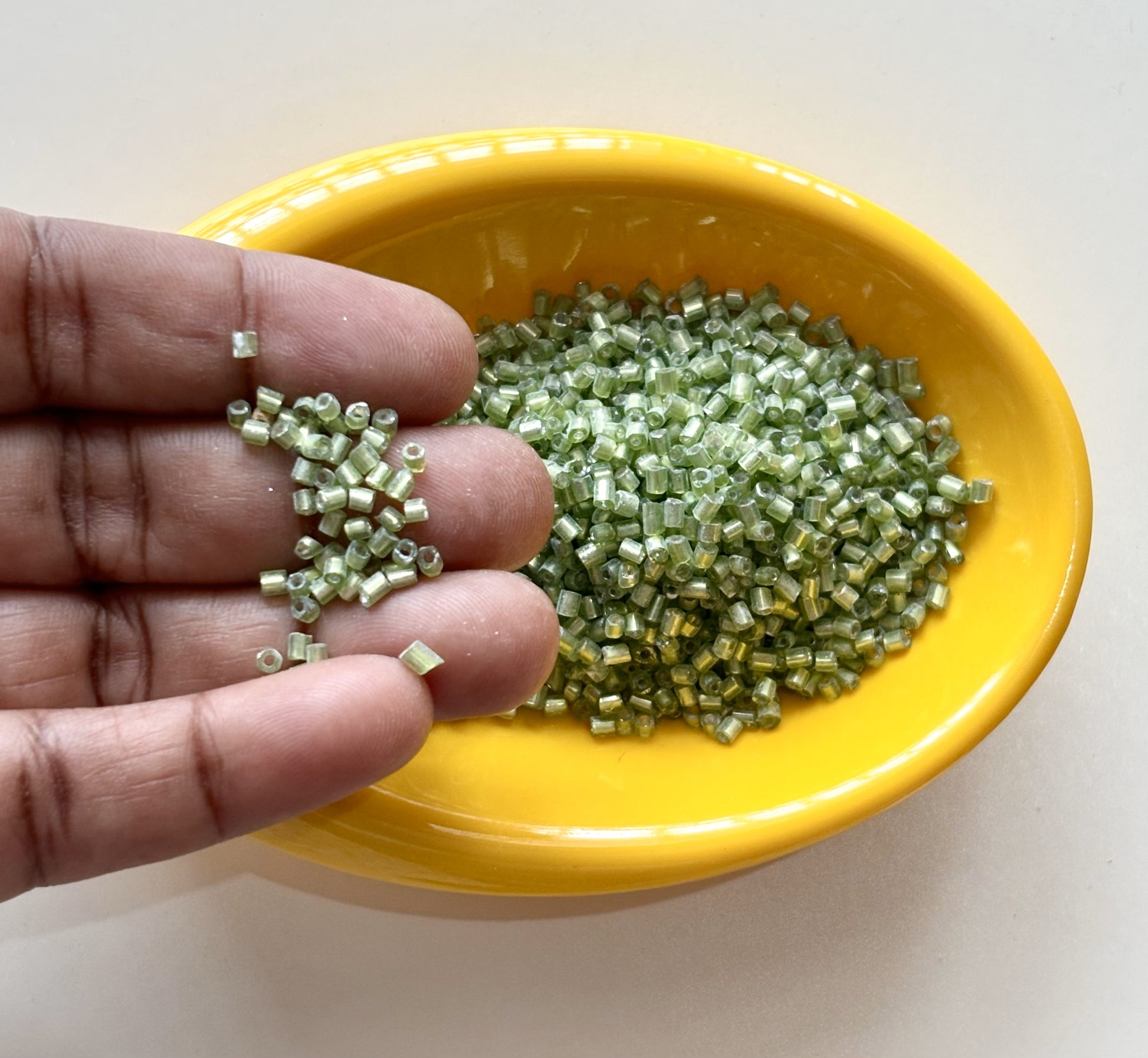Discover premium-quality two cut seed beads in a stunning mantis green luster finish. Perfect for intricate beadwork, embroidery, and custom jewelry designs. Pack of 20 grams. Size 11/0.