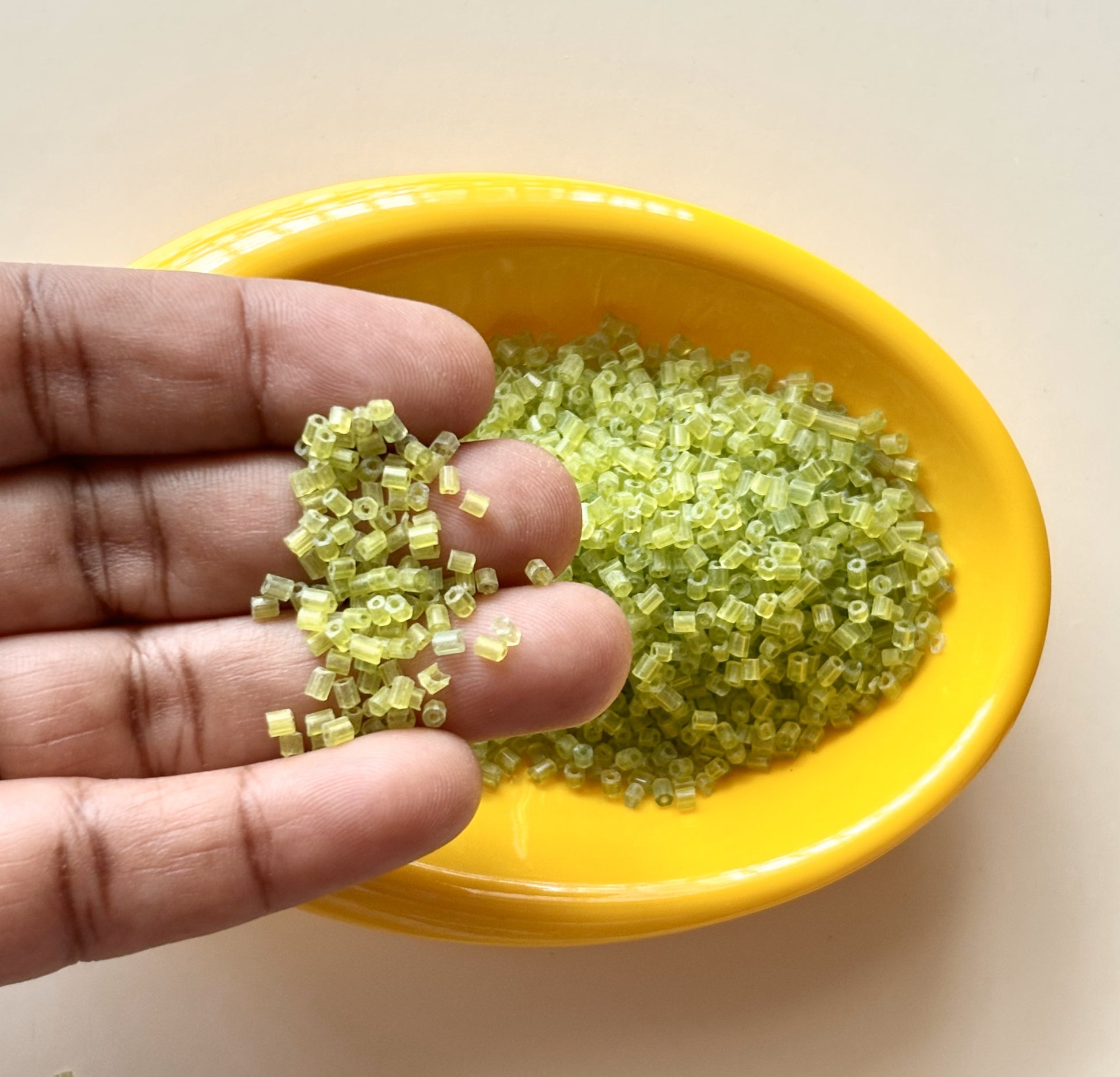 Discover premium-quality two cut seed beads in a stunning matt light green finish. Perfect for intricate beadwork, embroidery, and custom jewelry designs. Pack of 20 grams. Size 11/0.