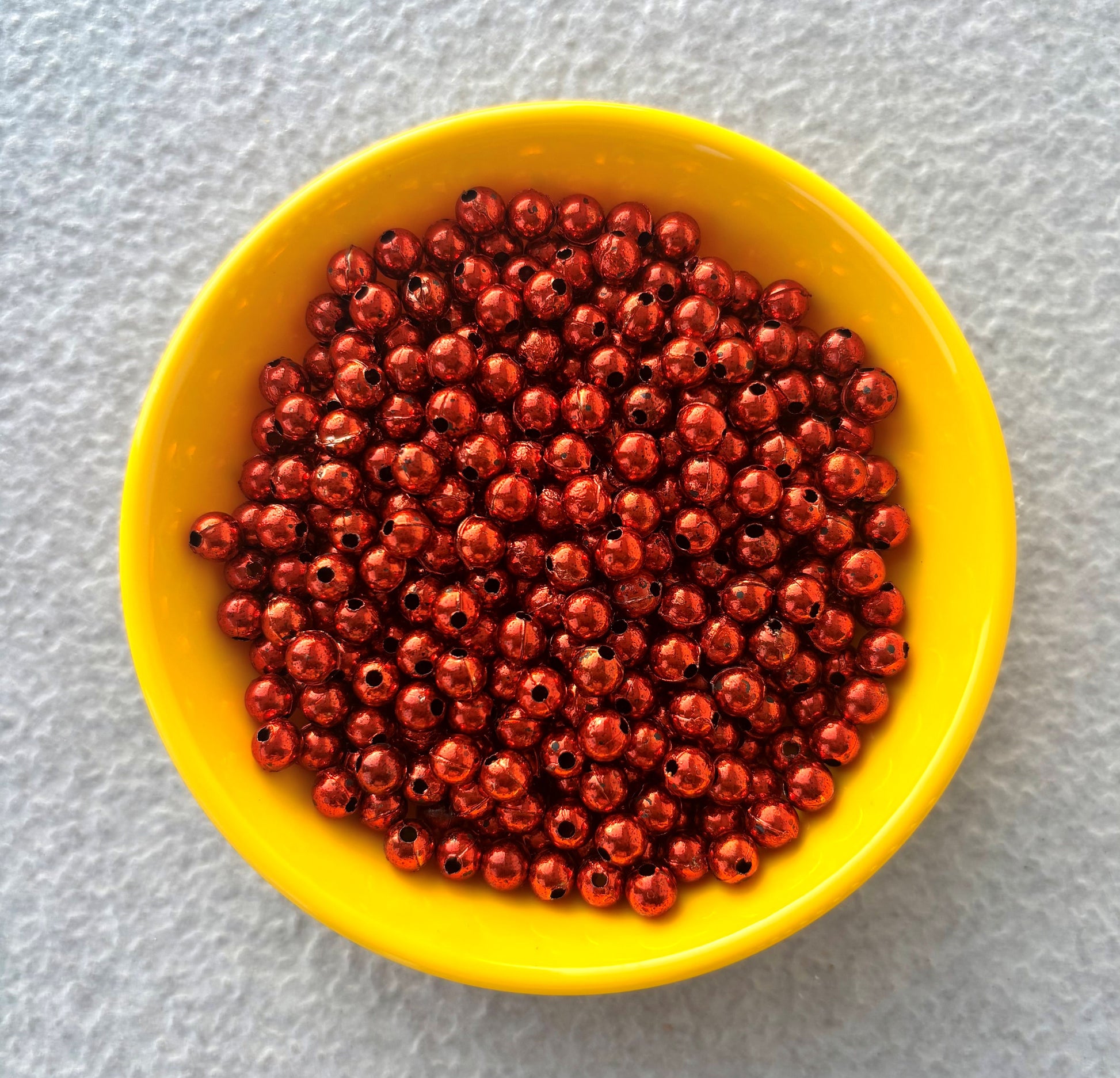 These vibrant metallic red 6mm acrylic round beads offer a brilliant sheen, perfect for adding a pop of color and shine to your jewelry making, crafting, and decorative projects. Pack of 25 grams.