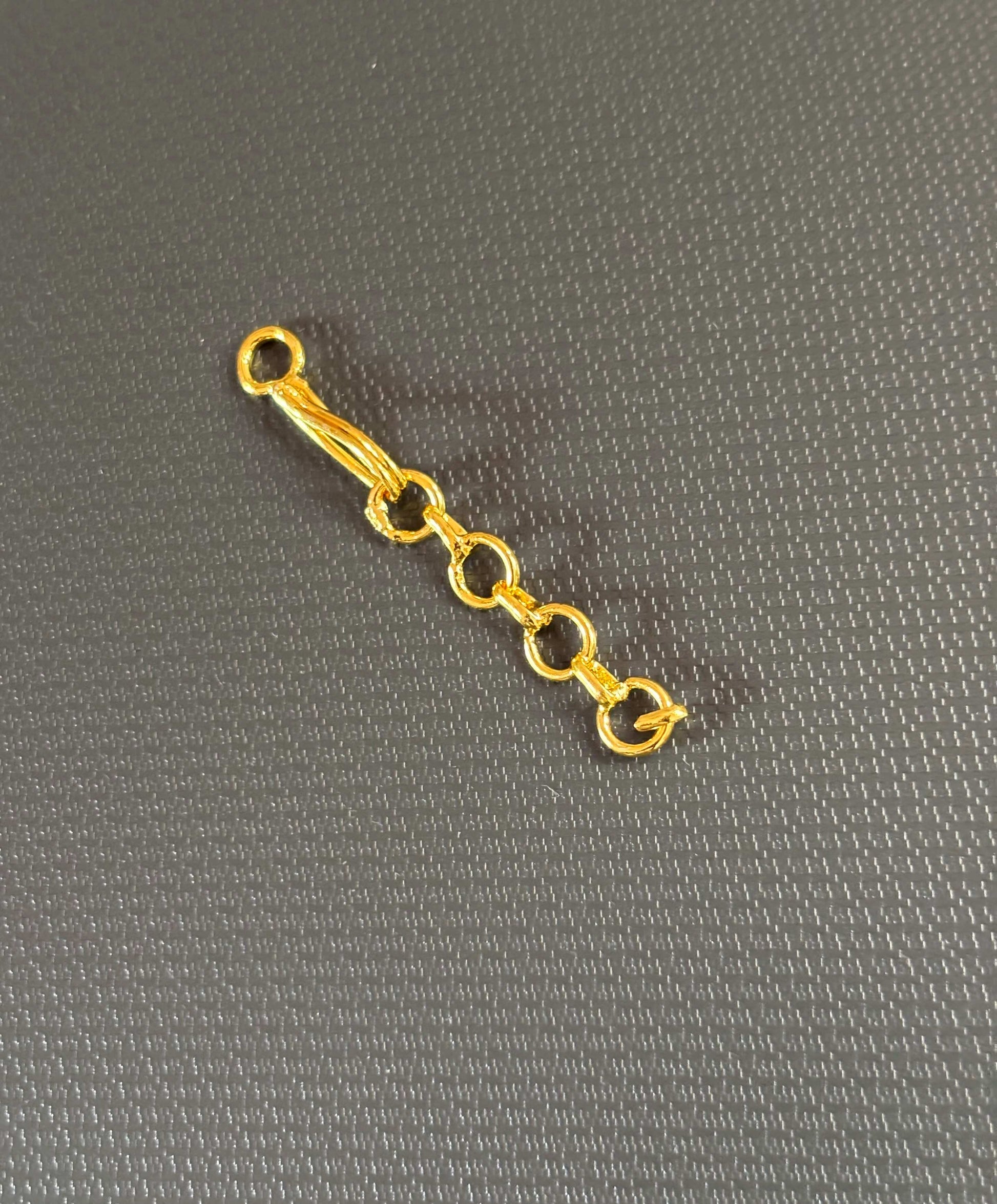 A short, durable gold-tone chain segment with a loop connector, ideal for making fine length adjustments to bracelets, necklaces, or earrings. Electro plated coating. Soldering done to remove sharp edges. Pack of 10 pieces. Length 1.75 inches.