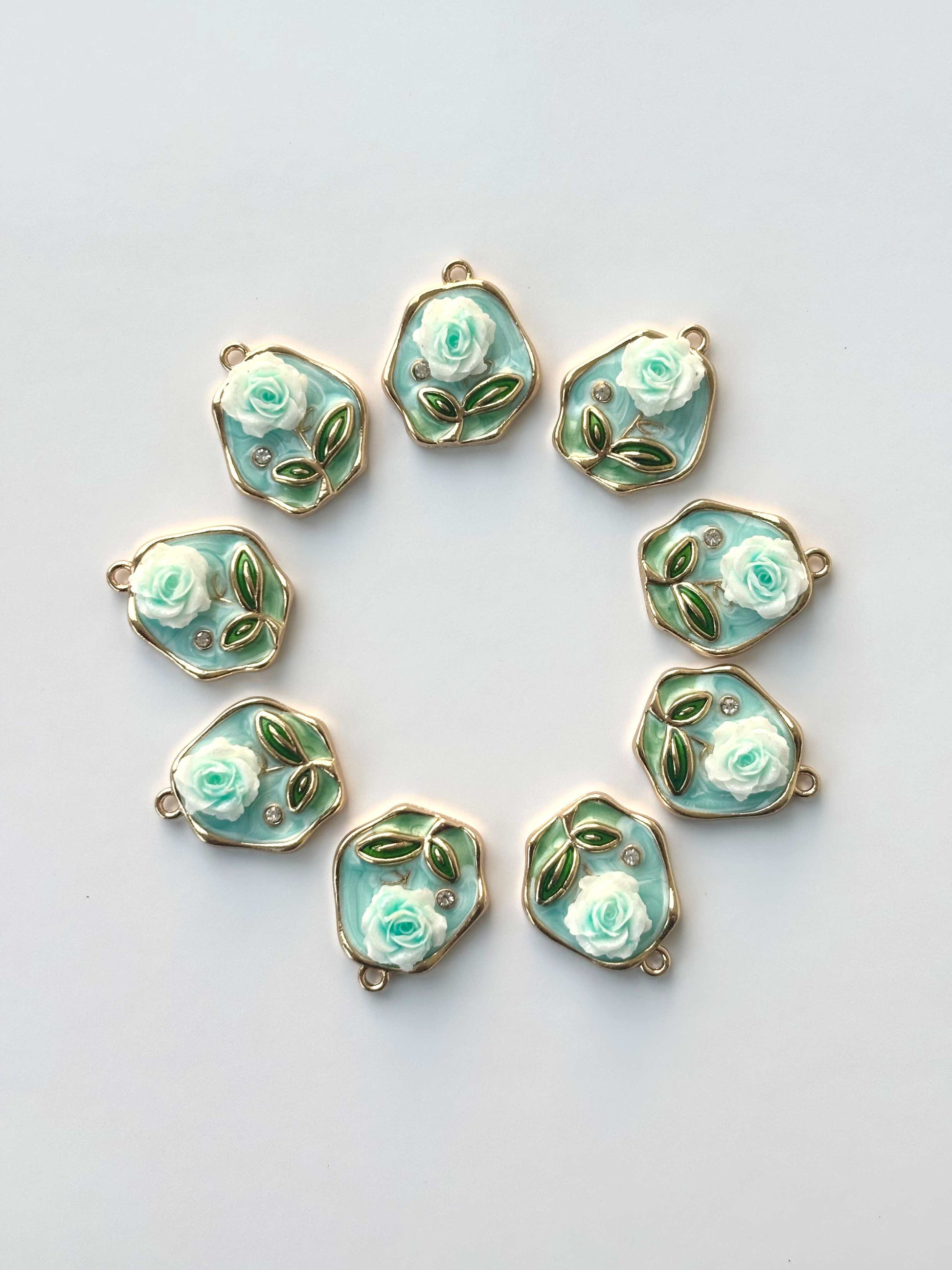 Mint Green Enamel Rose Charms