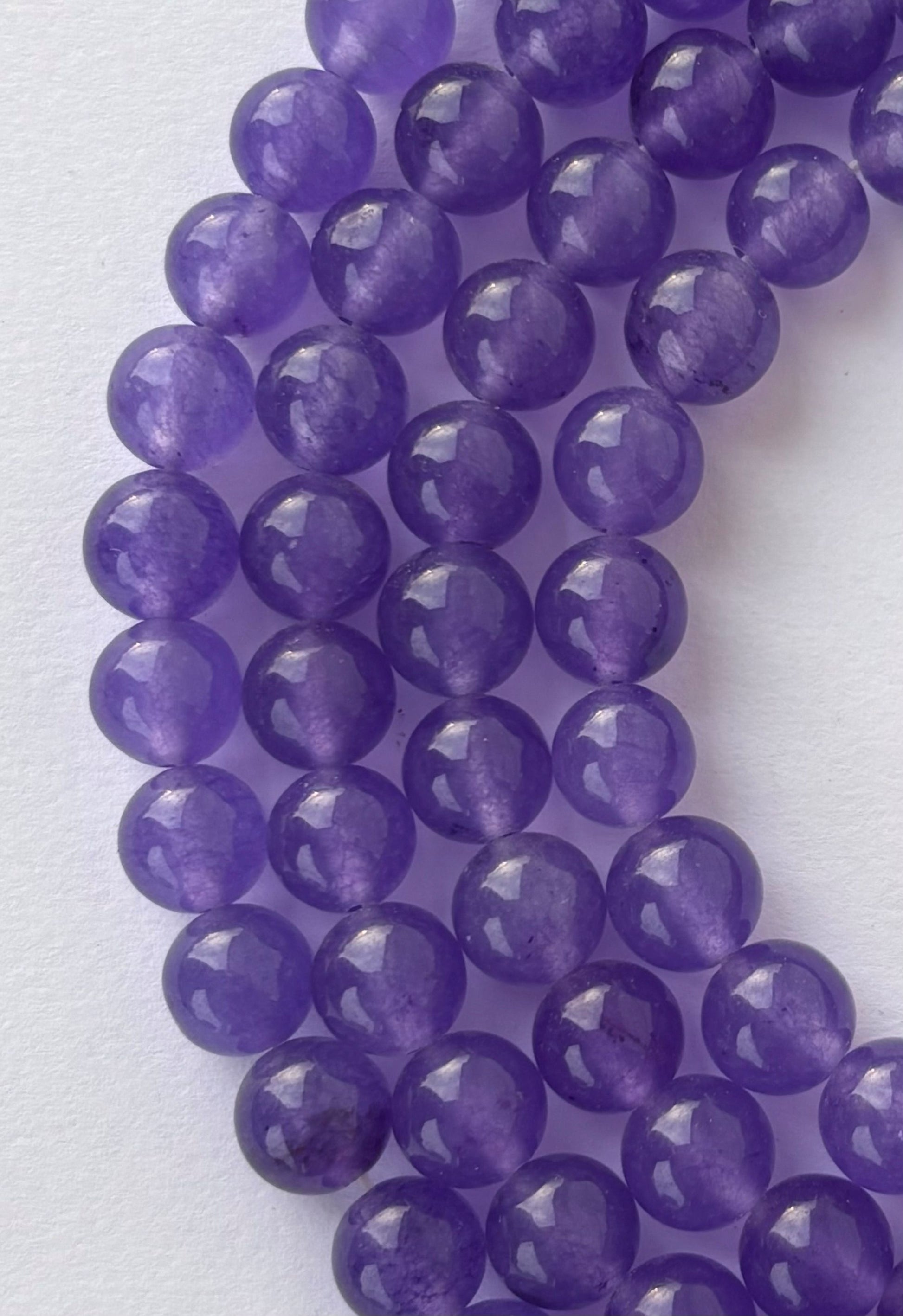 Discover captivating natural purple amethyst round beads, showcasing various shades of vibrant violet, perfect for spiritual, elegant, and unique jewelry designs. Sold by a single strand measuring 15 inches with 47 beads approximately. Size 8MM.