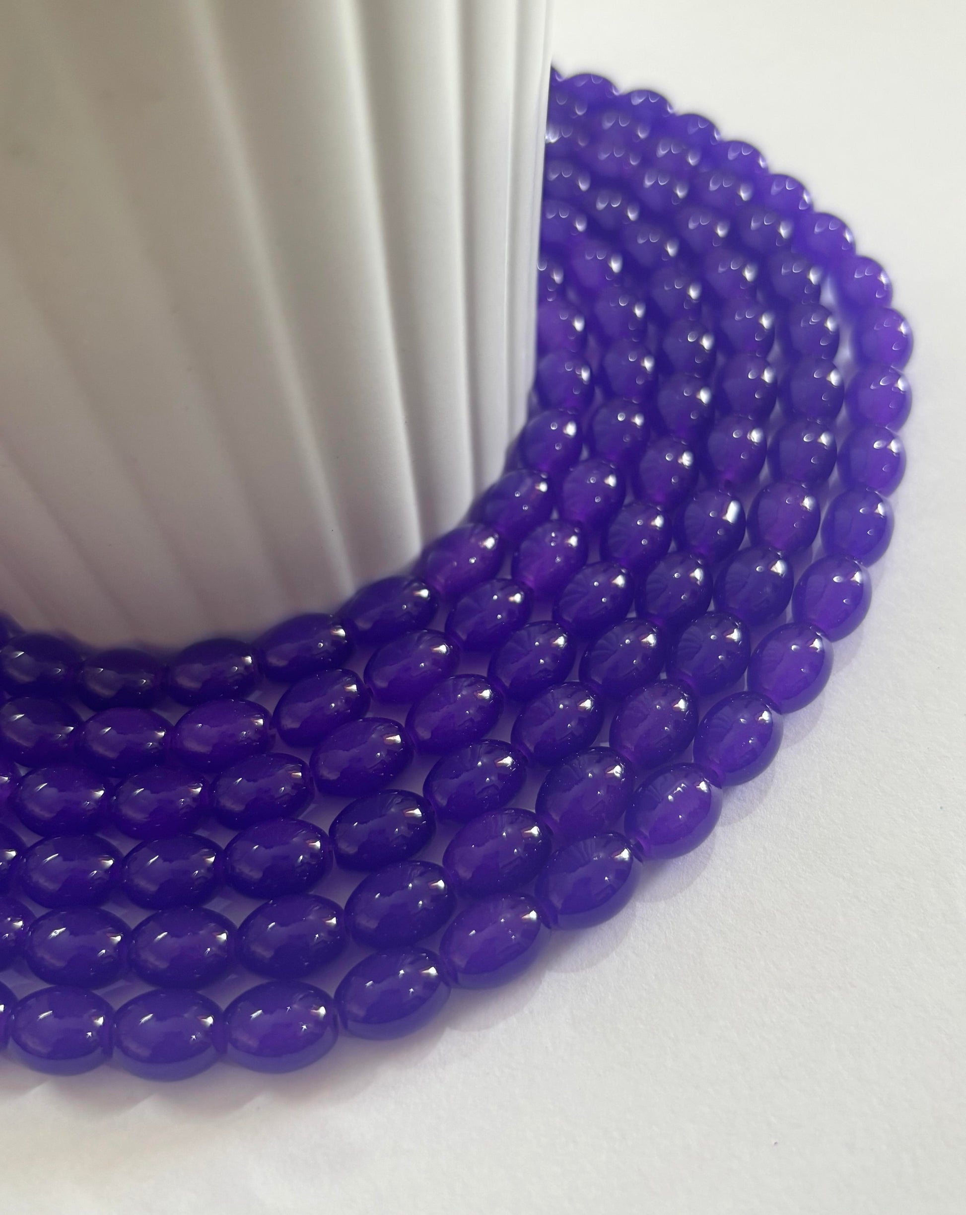 Discover enchanting smooth oval violet glass beads, perfect for elegant jewelry designs. Size 10X7 MM. Length 15 inches.