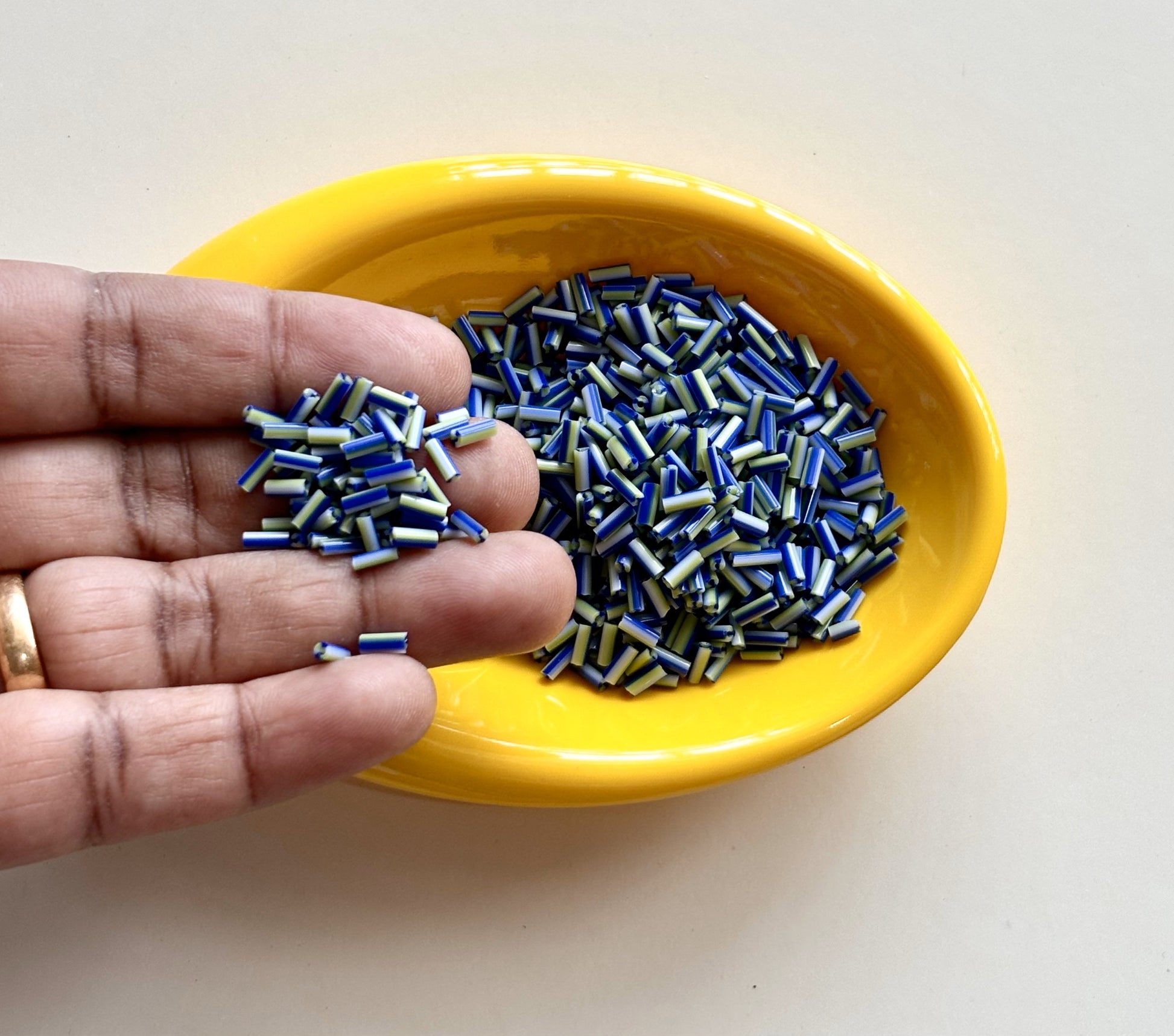 Discover vibrant striped glass beads, perfect for jewelry making, crafts, and DIY projects. These beads feature stunning pastel green and blue tones for eye-catching designs. Pack of 20 grams.