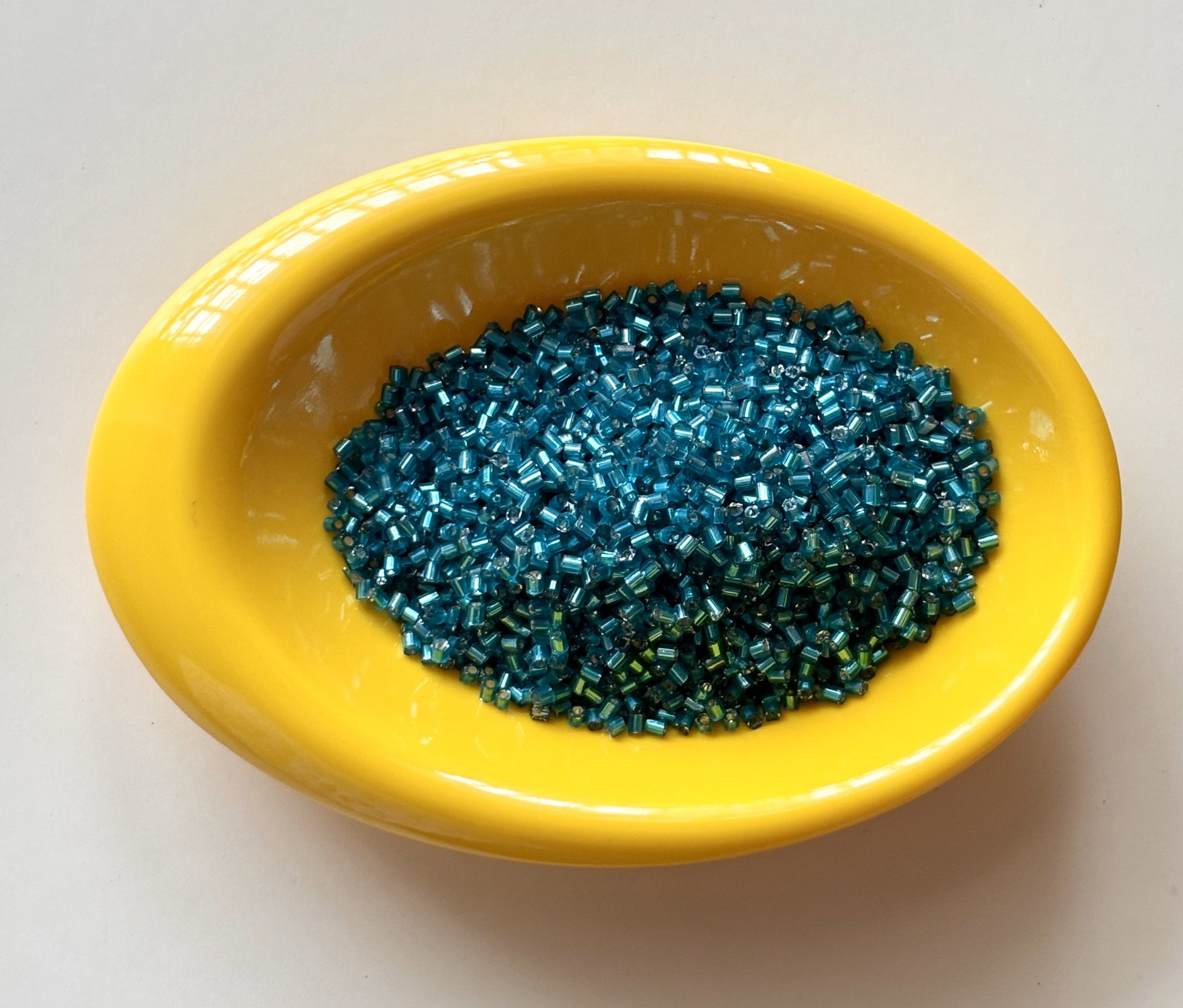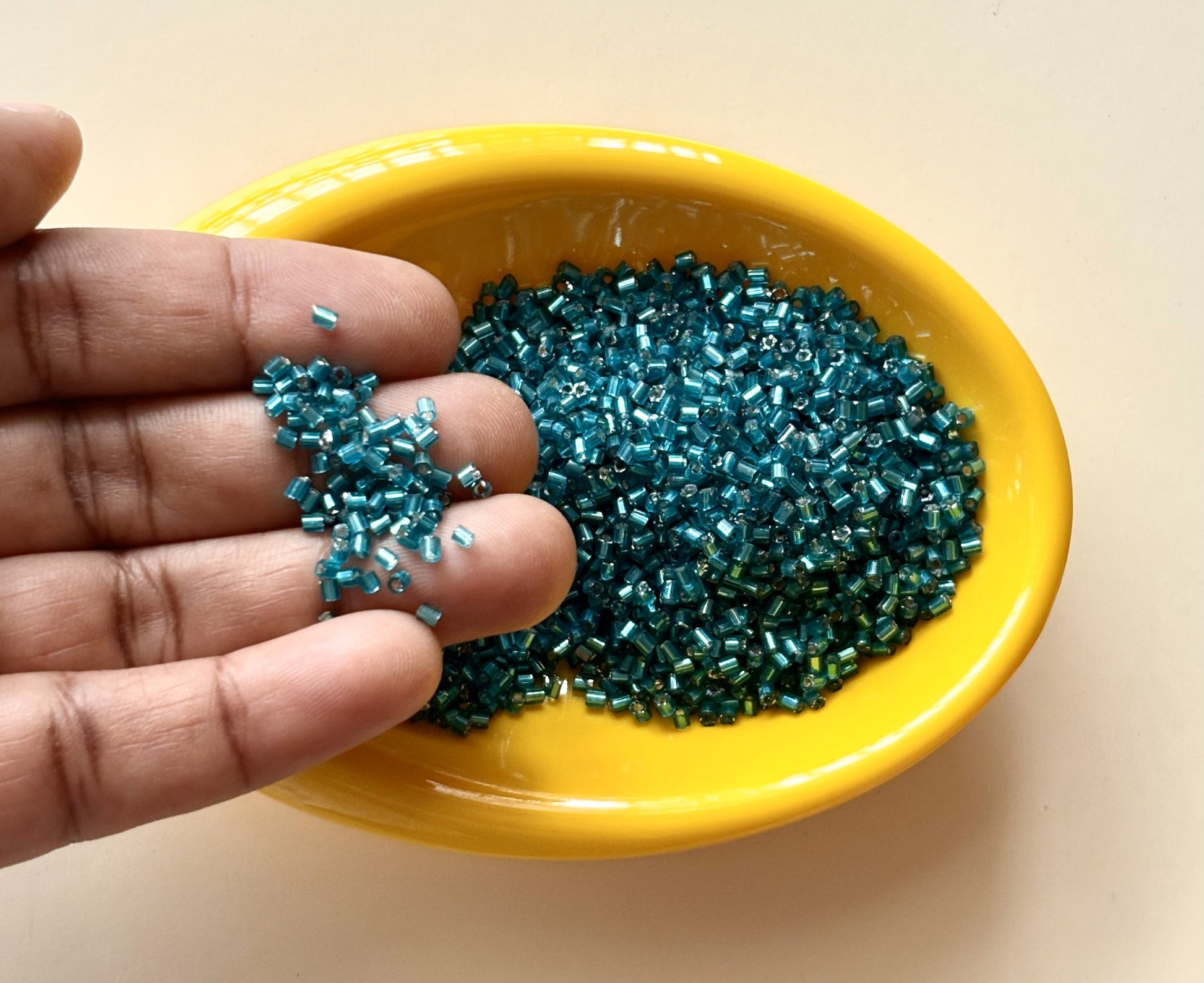 Discover premium-quality iridescent two cut seed beads in a stunning peacock green luster finish. Perfect for intricate beadwork, embroidery, and custom jewelry designs. Pack of 20 grams. Size 15/0.