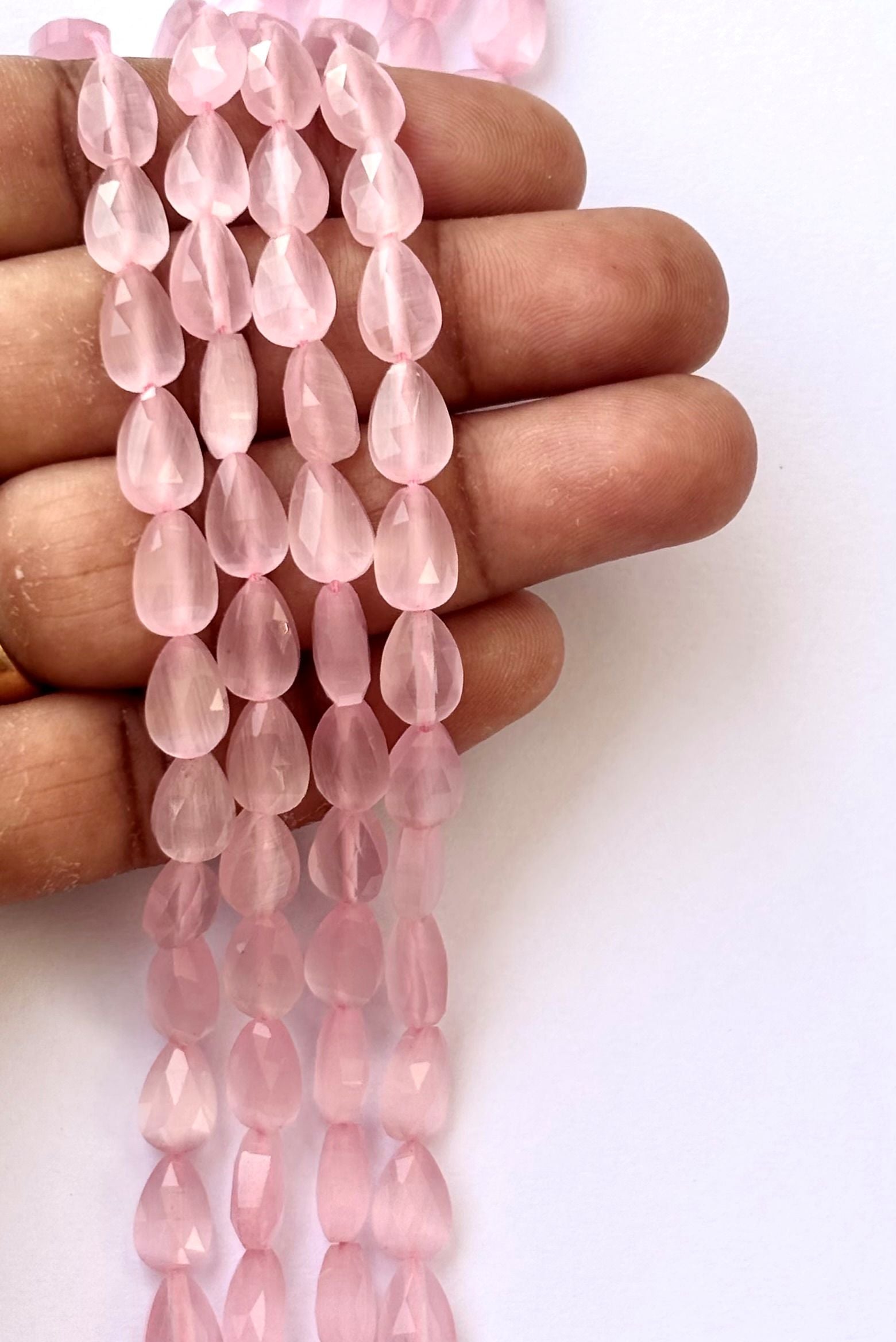 These soft pink agate faceted teardrop beads offer a beautiful luster, perfect for crafting elegant necklaces, earrings, and other unique jewelry designs. Sold by single strand with 35 beads. Size 8x6MM.