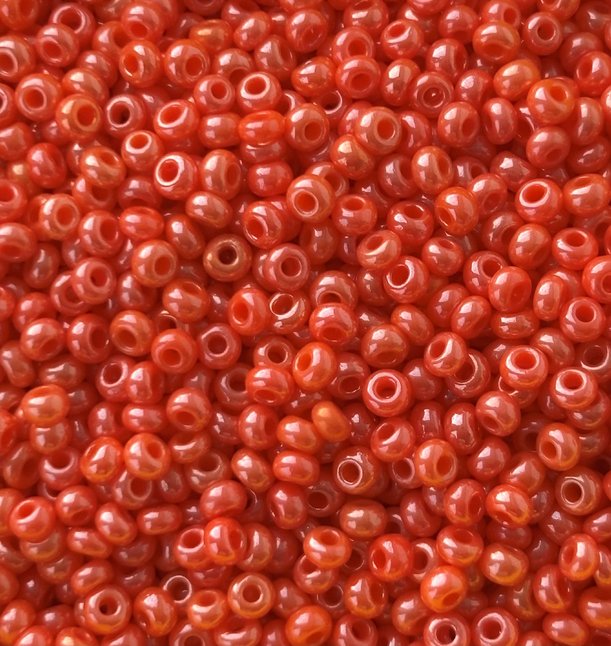 These unique Opaque-Rainbow Pumpkin Preciosa seed beads feature a vibrant, iridescent finish, perfect for intricate bead weaving, embroidery, and all your detailed, colorful jewelry making and craft projects. Size 11/0. Pack of 25 grams.